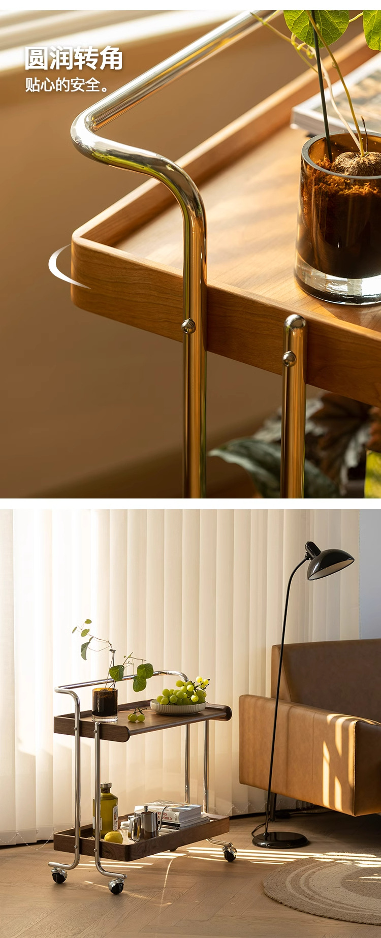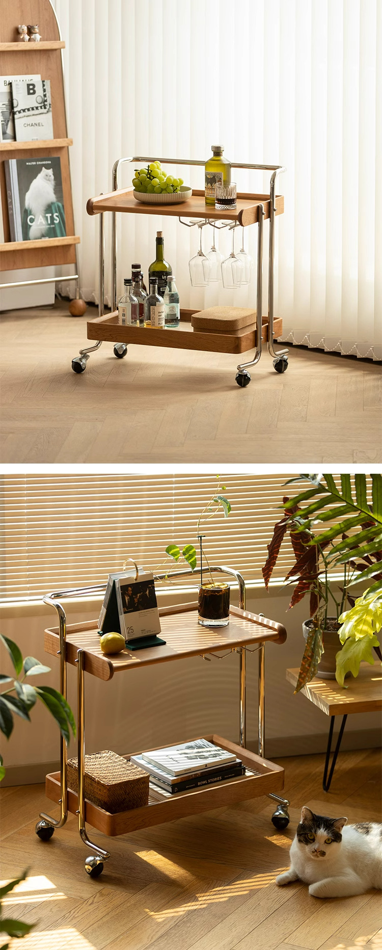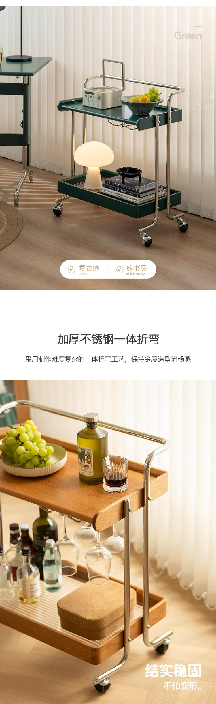 桜の木の実木のレストランの小さい車の物置棚は移動することができます。