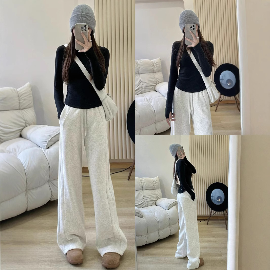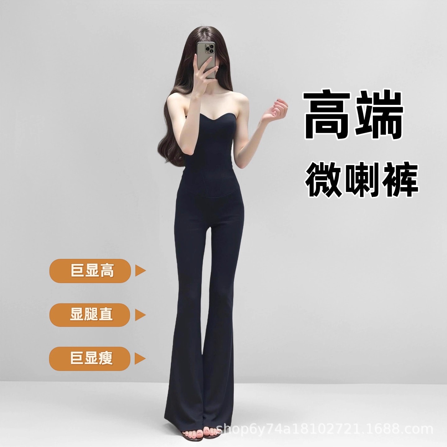 高端黑色微喇裤女款2025新款秋冬加绒喇叭裤高腰显瘦垂感女裤西裤