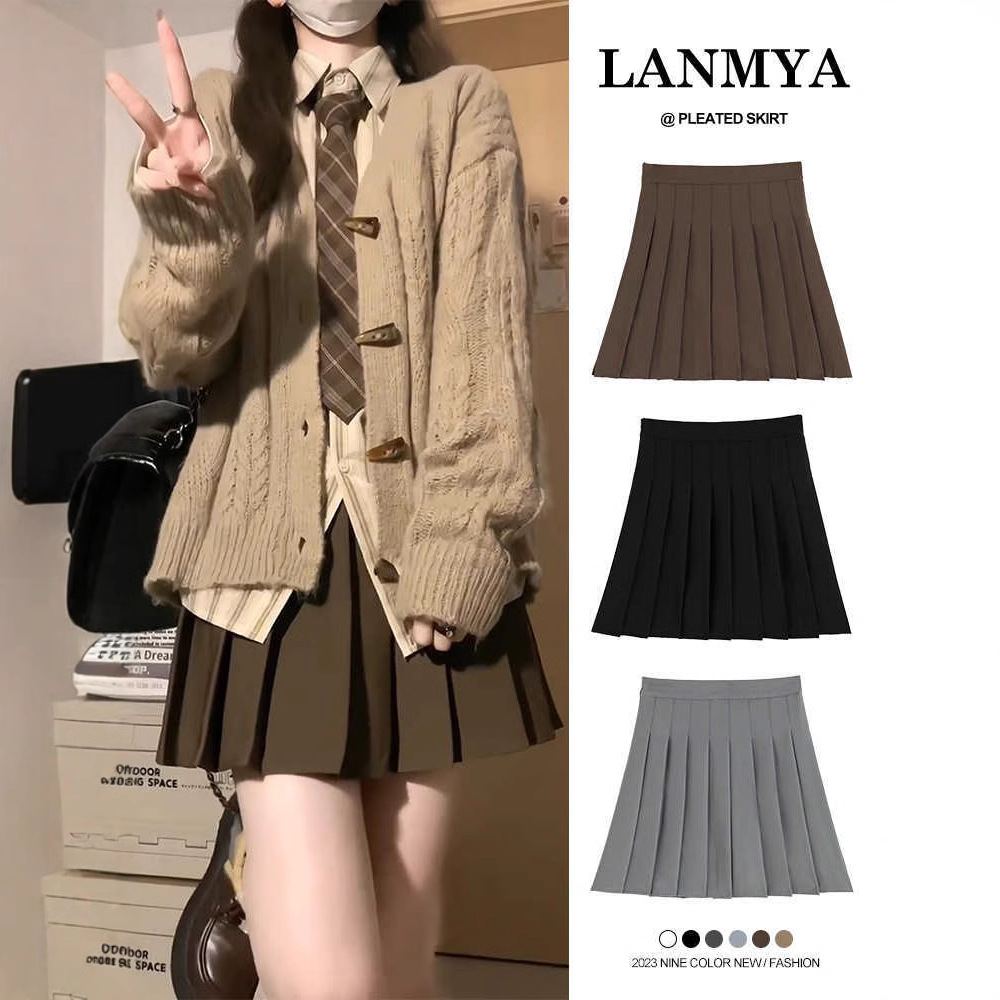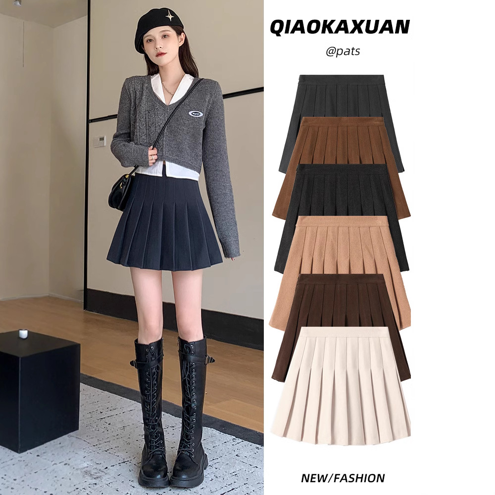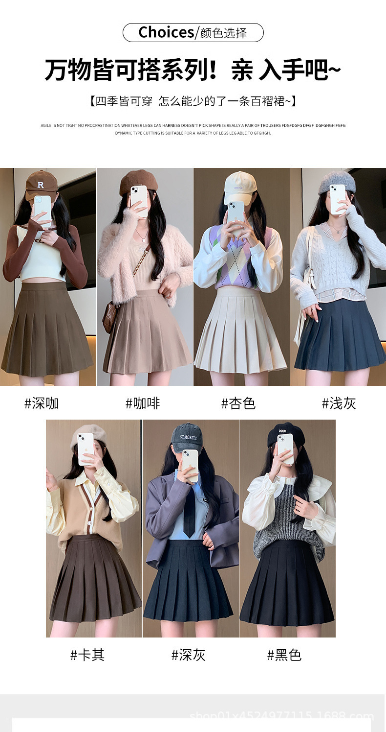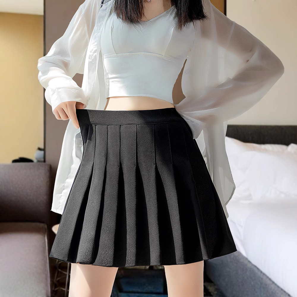 スーツプリーツスカート レディース 春秋 ハーフスカート JK露出防止 ハイウエスト 黒 細身 細見え Aライン ショートスカート