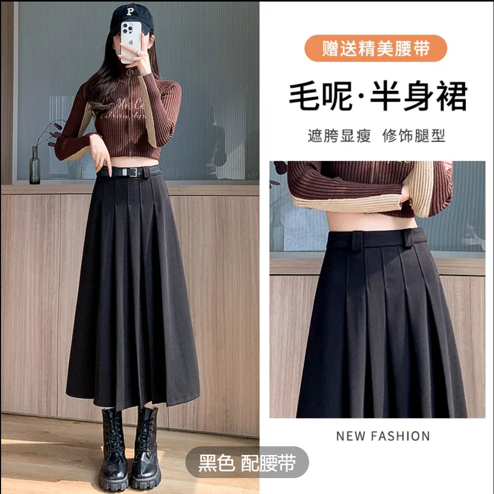 秋冬の大きいサイズの婦人服のファッションの気質のa字の半身のスカートは腰が高くて痩せています。