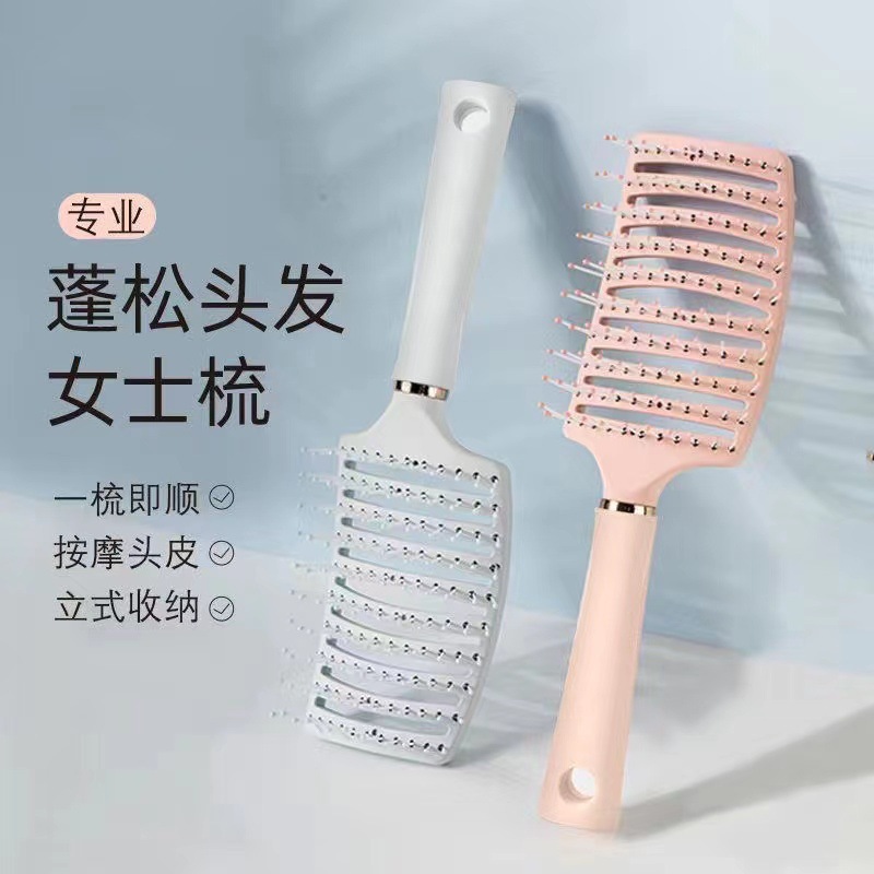さくらピンクふわふわリブビッグカーブコーム女性エアバッグマッサージコームカーリングコームマッサージスタイリングアーティファクトホームコーム