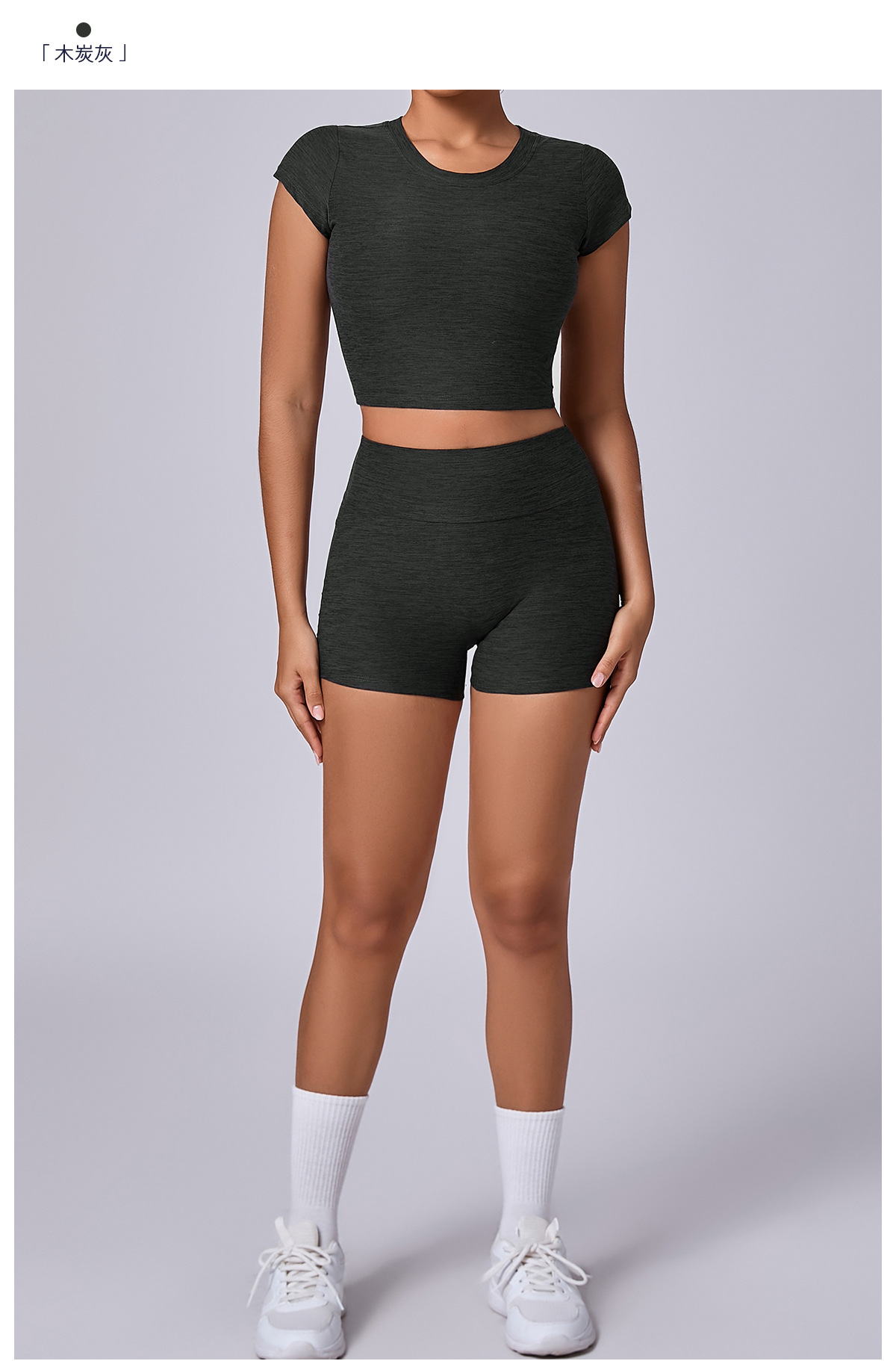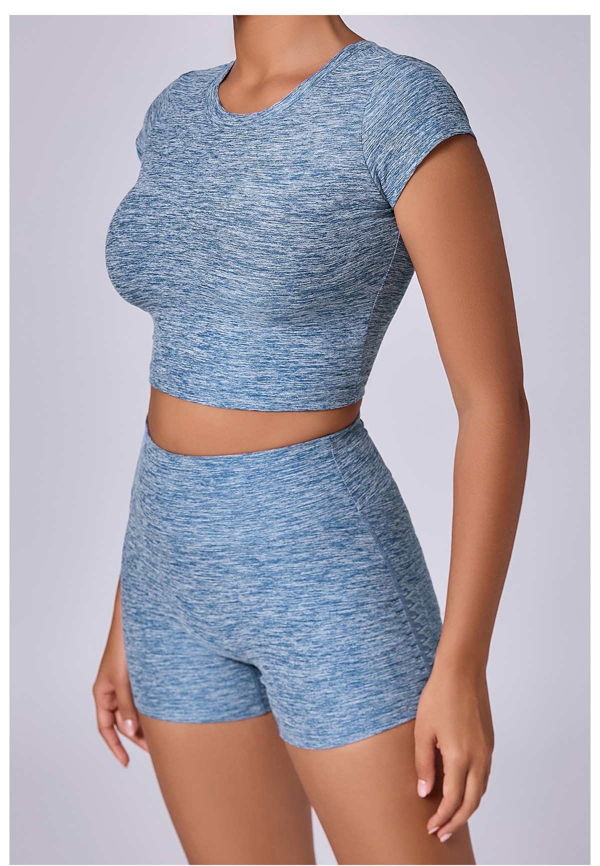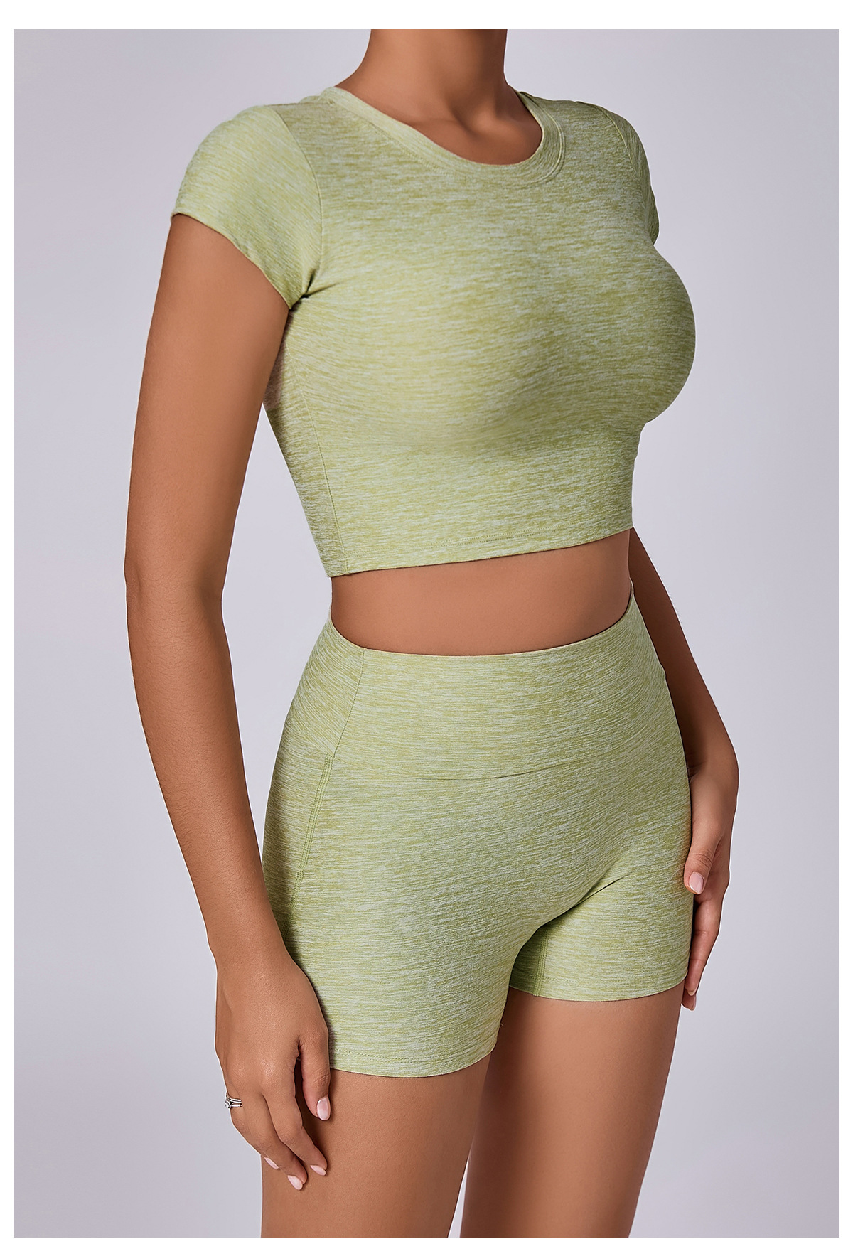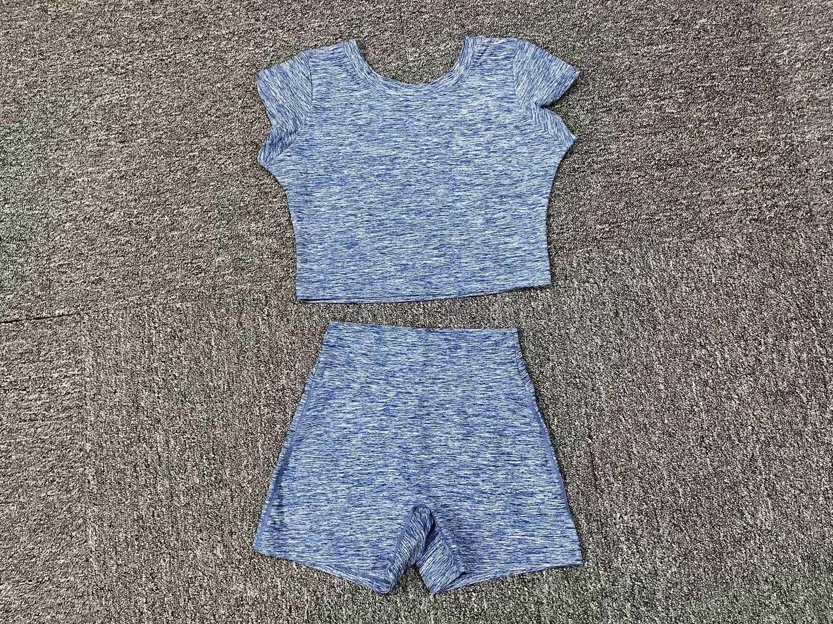 新型裸感ヨガ服女性交差式vネック半袖トレーニング服セット