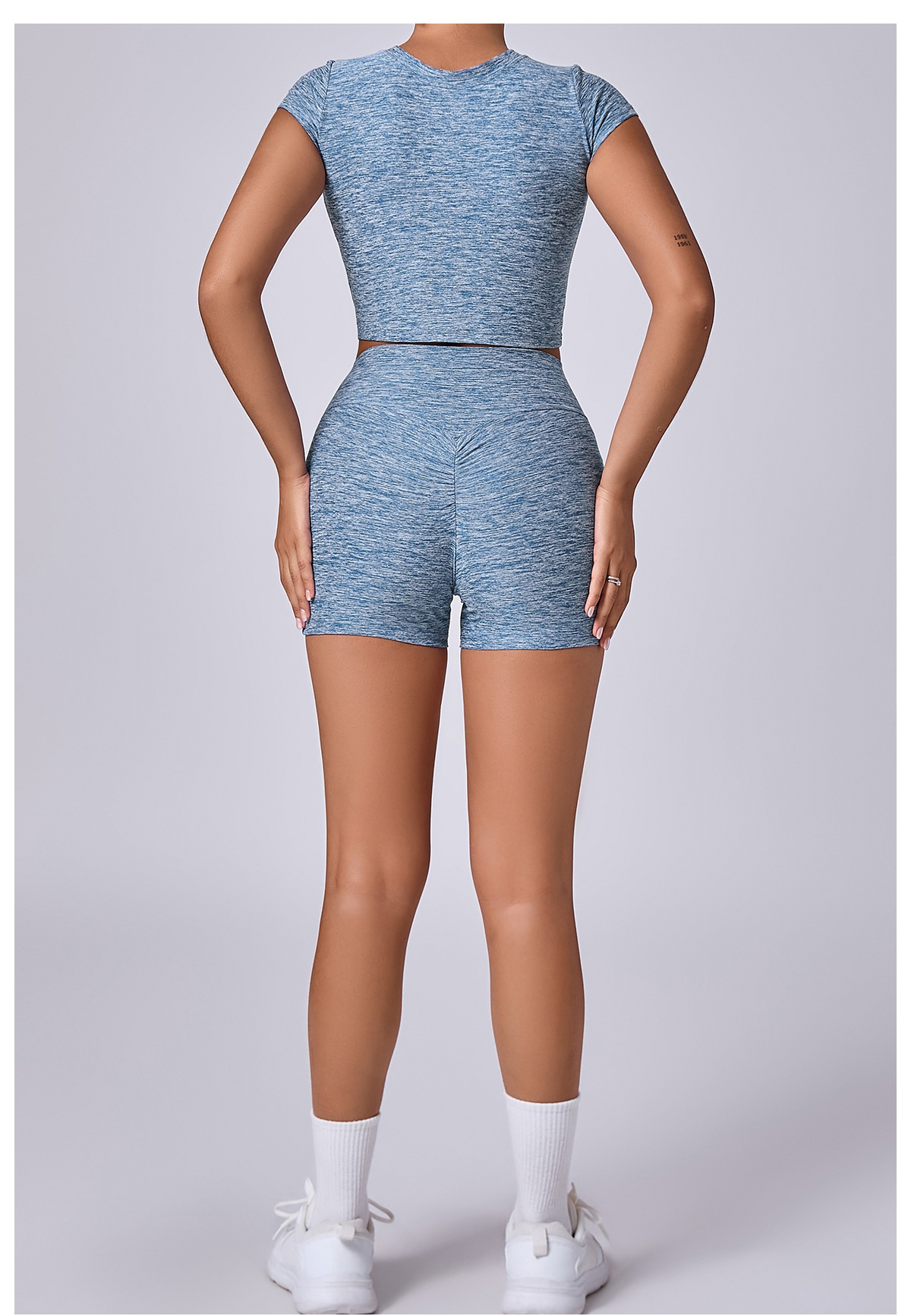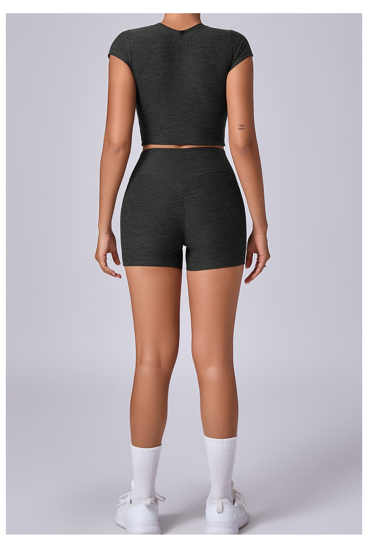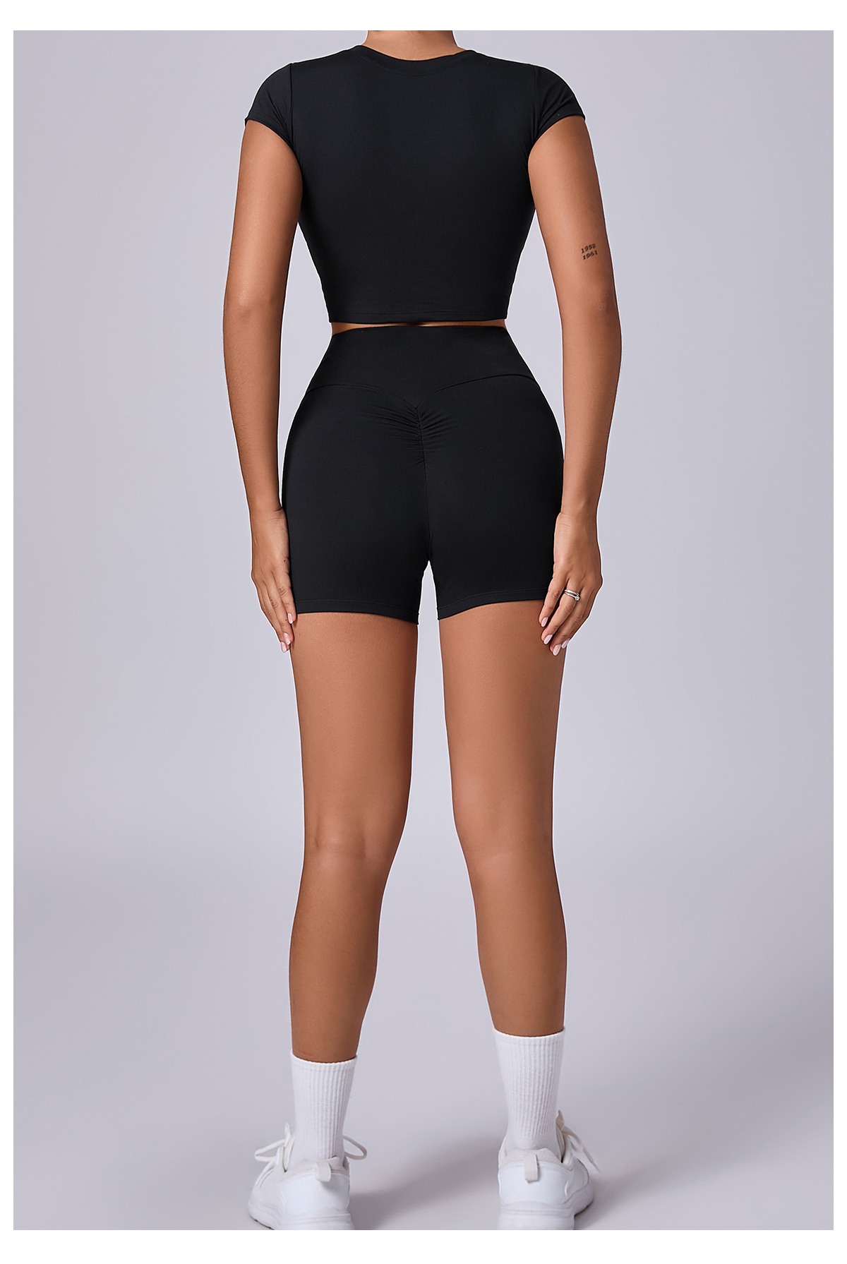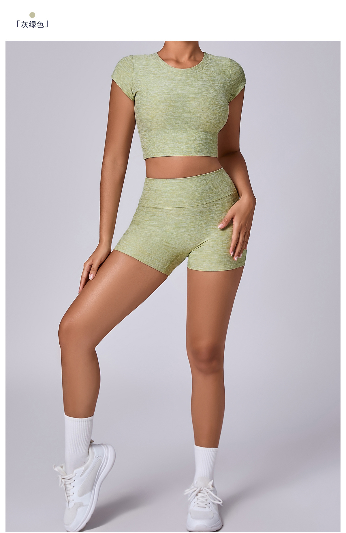 新型裸感ヨガ服女性交差式vネック半袖トレーニング服セット