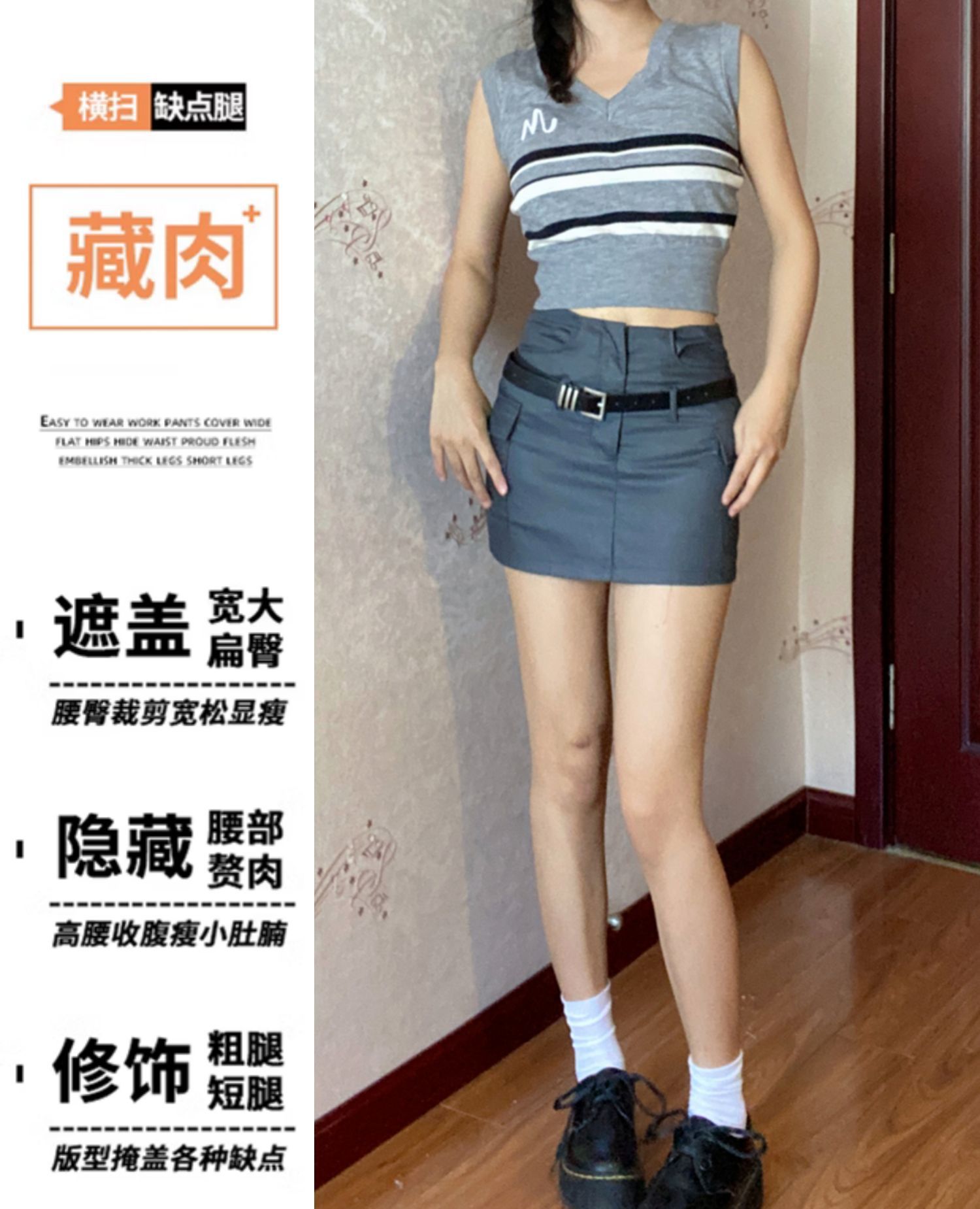 甘い中に辛いヒッピーを持っているアメリカのギャルはスカートの女性の大きいサイズの秋の半身のスカートの灰色にベルトをつけてヒップのスカートを包みます。