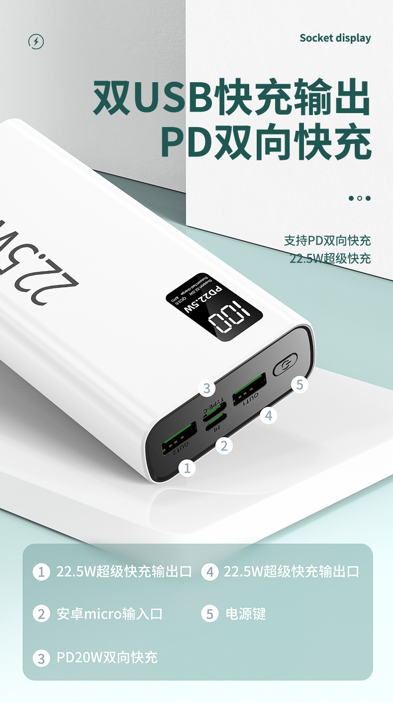 【产品功能】:22.5W快充,精准数显,大IC保护板,软件板