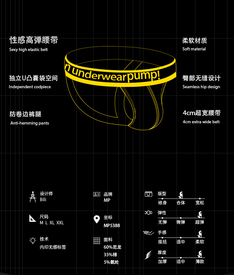 セクシーなメンズブリーフスポーツローウエストレーシングフラグ要素エンボス加工快適で通気性のあるメンズパンツ MP2123