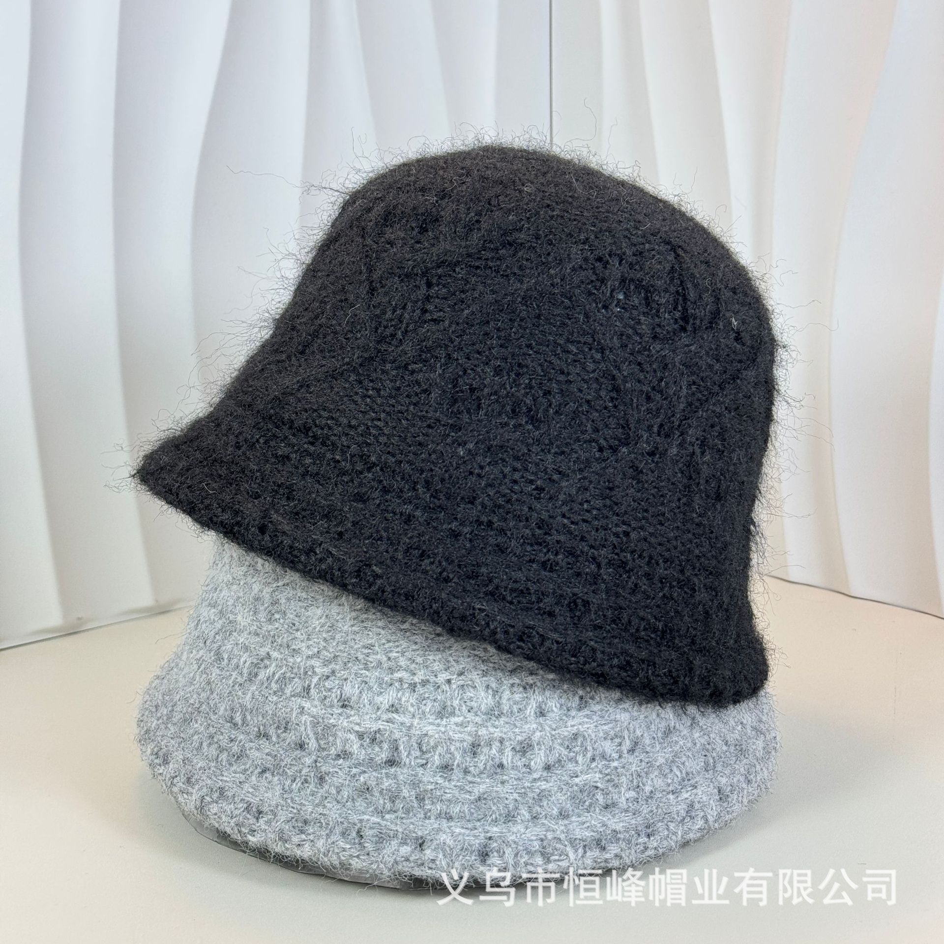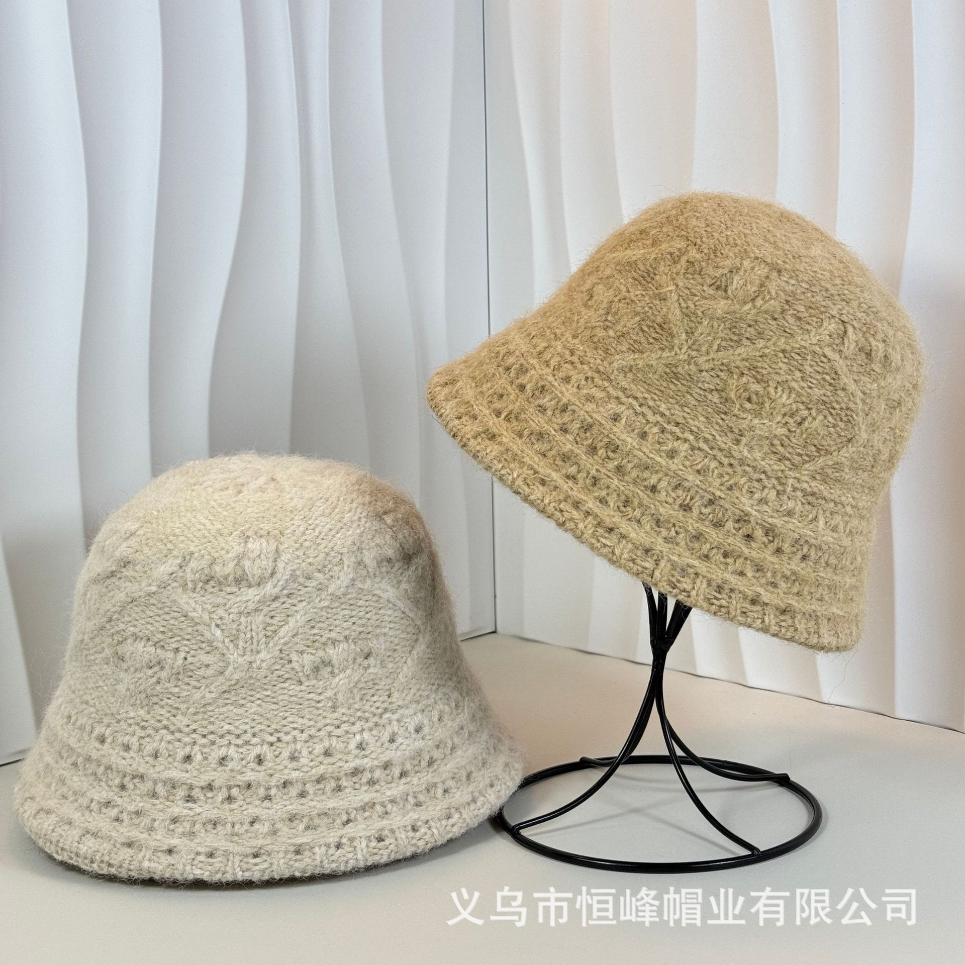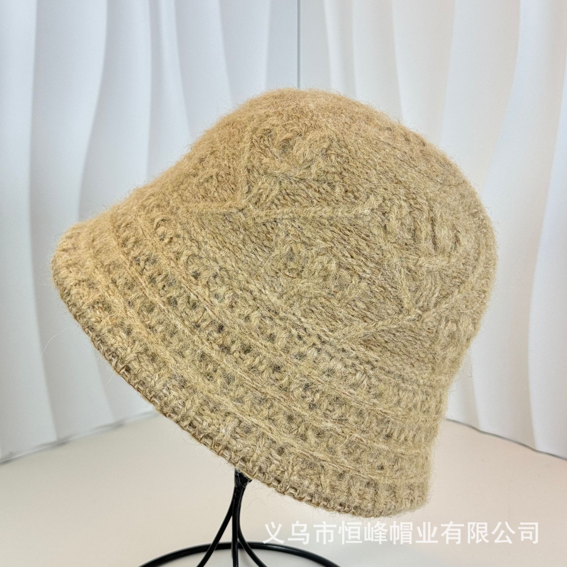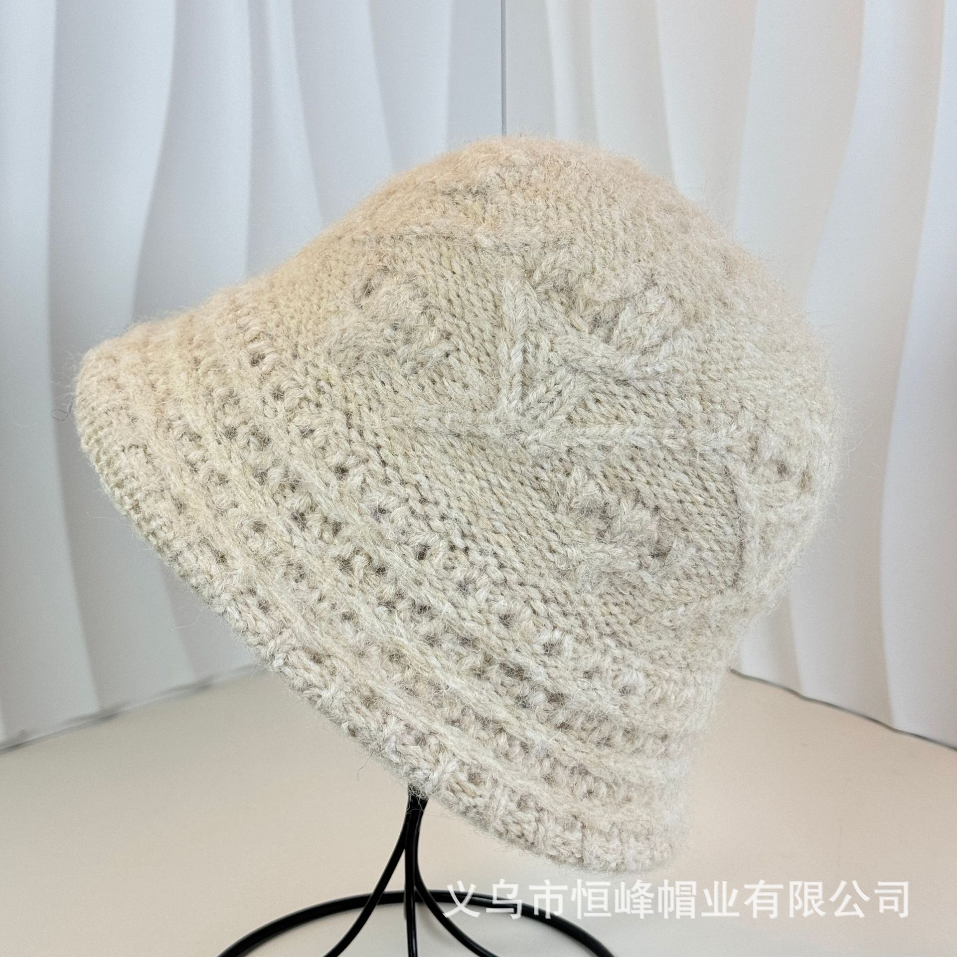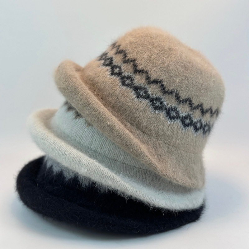 新款甜美百搭檐卷边提花保暖毛线盆帽女日系休闲显脸小针织渔夫帽