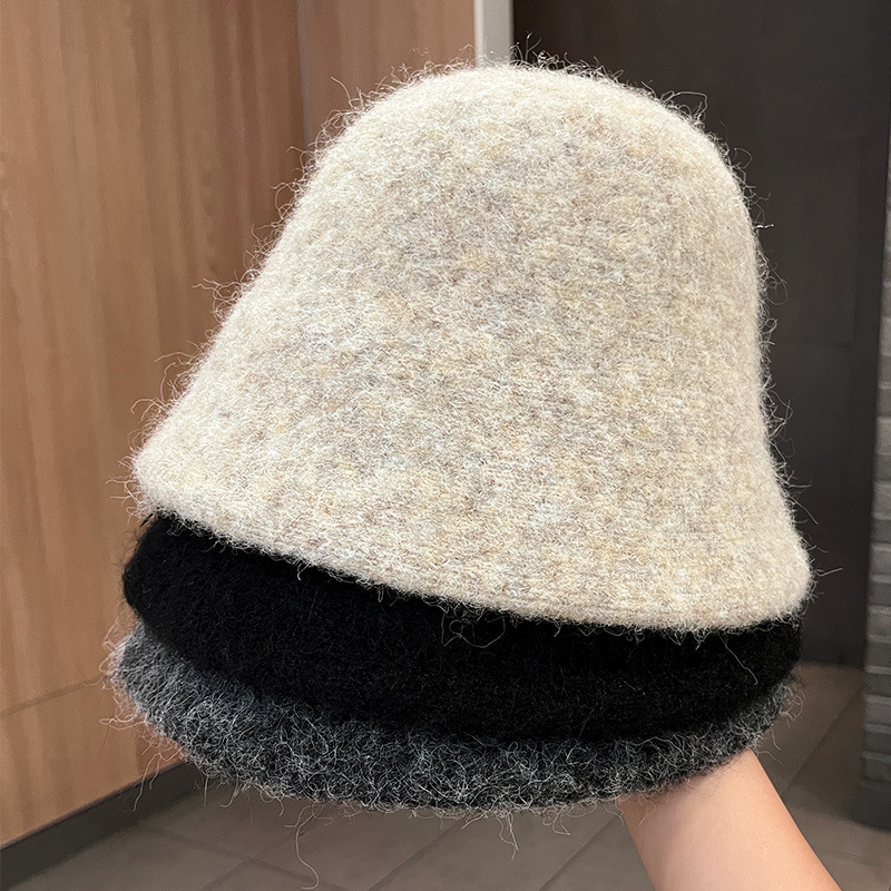 秋冬复古优雅氛围感保暖盆帽女赫本风百搭羊绒渔夫帽子针织水桶帽