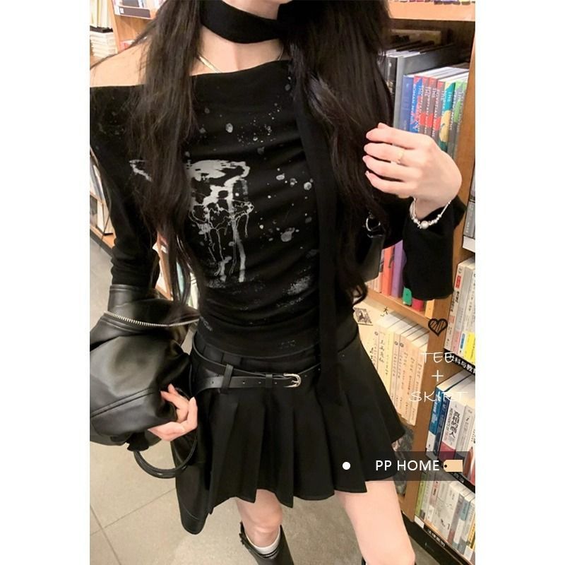 暗黒亜比y 2kの肩の日焼け止めの上着の女性2025夏の新型の亜文化の復古の十字の長袖のtシャツ