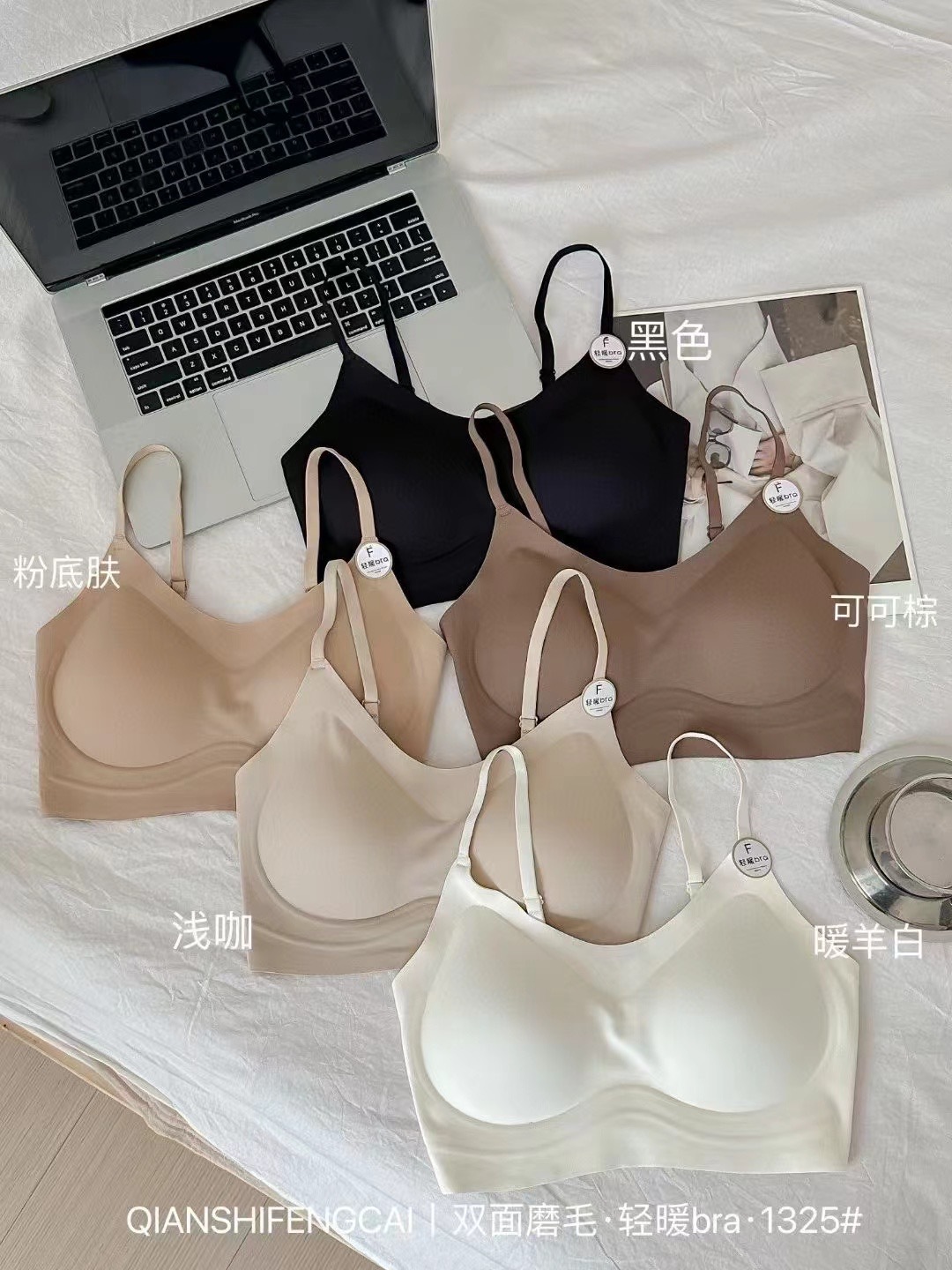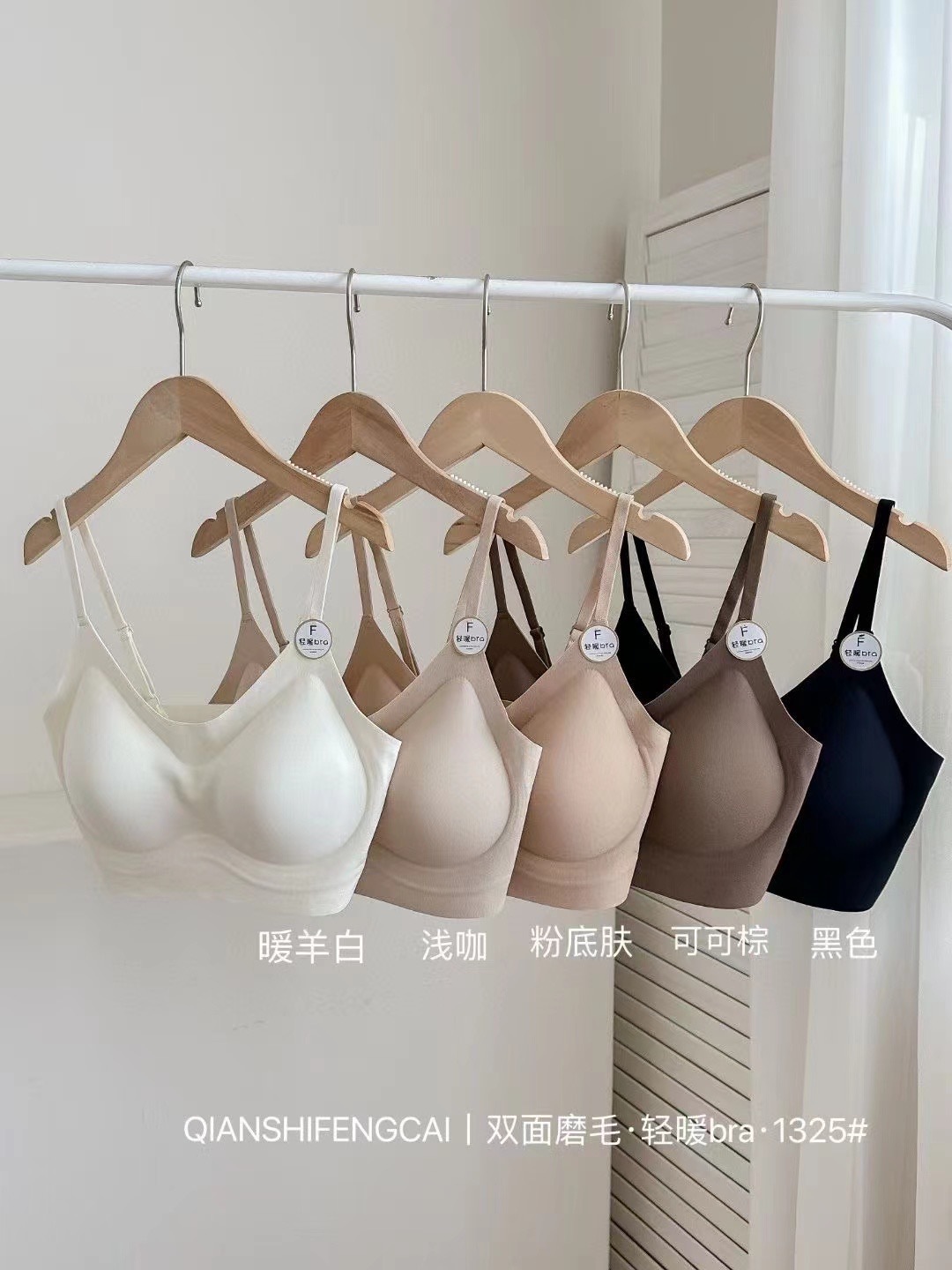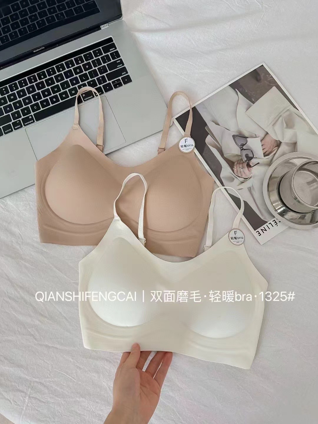 秋冬款粉底液磨毛暖肤少女内衣固定杯侧收无痕聚拢小云肌背心1381