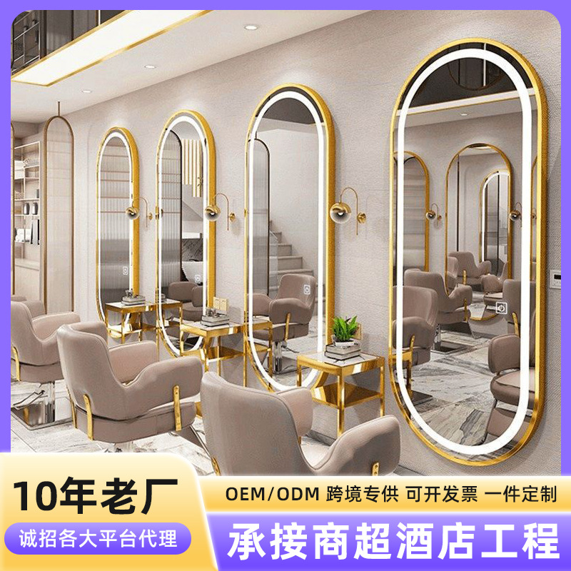 ネット赤理髪店鏡台ヘアサロン専用壁掛け式シンプル美容店フロアミラーLEDパーマ染鏡台タッチ