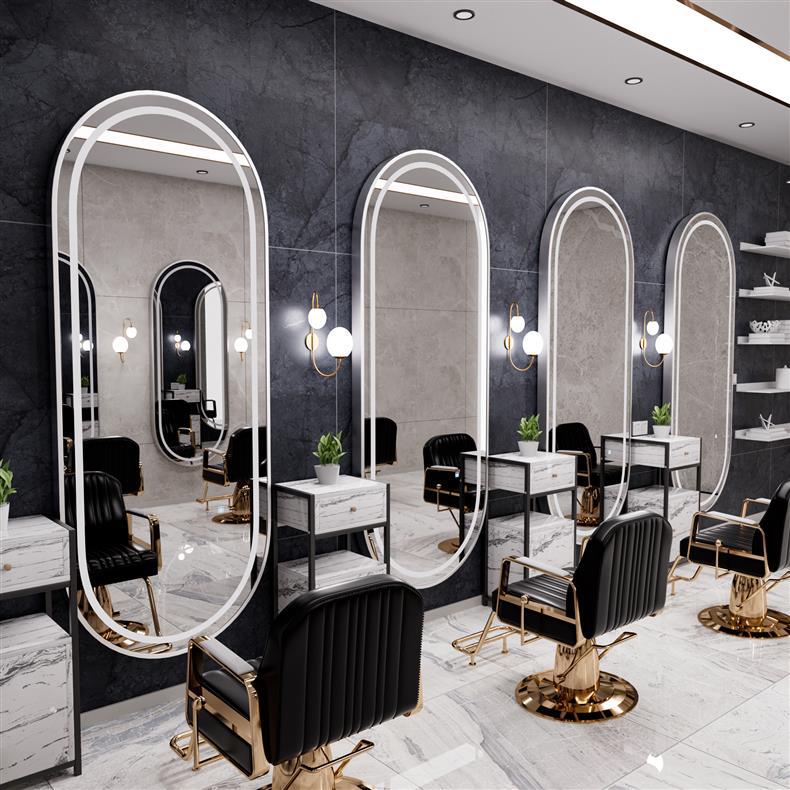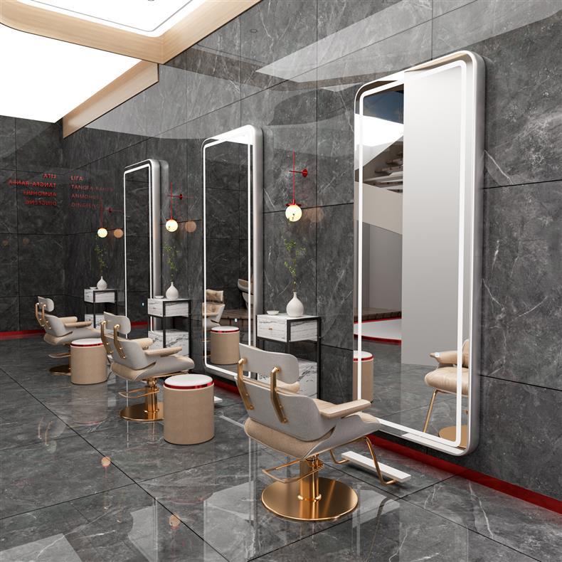 新しい理髪店美容ミラーとライト一体型ヘアサロン特別なパーマと染色エリアインターネットセレブトレンディな店壁掛けミラーキャビネット卸売