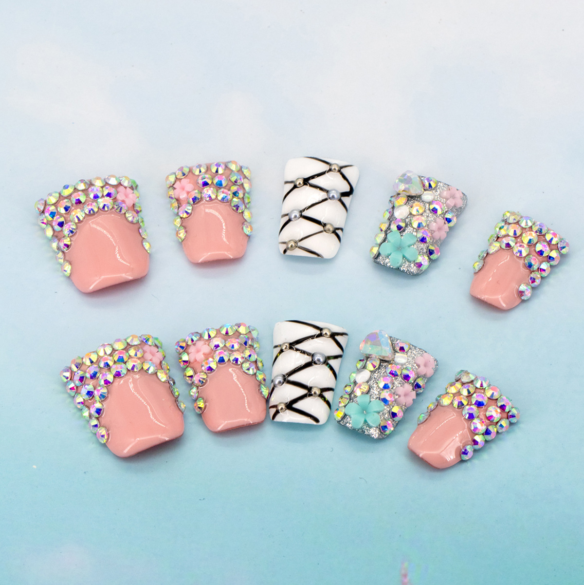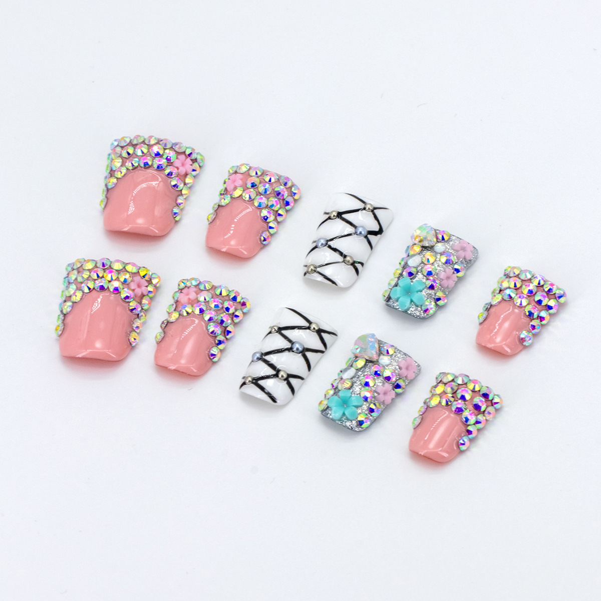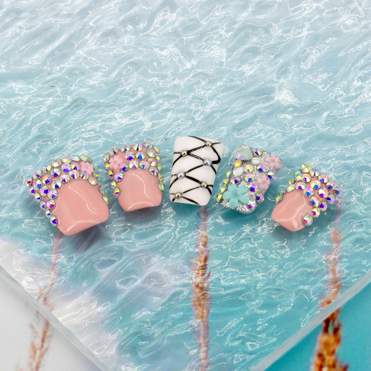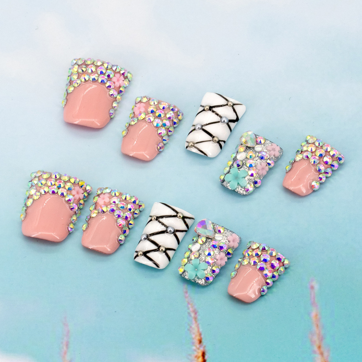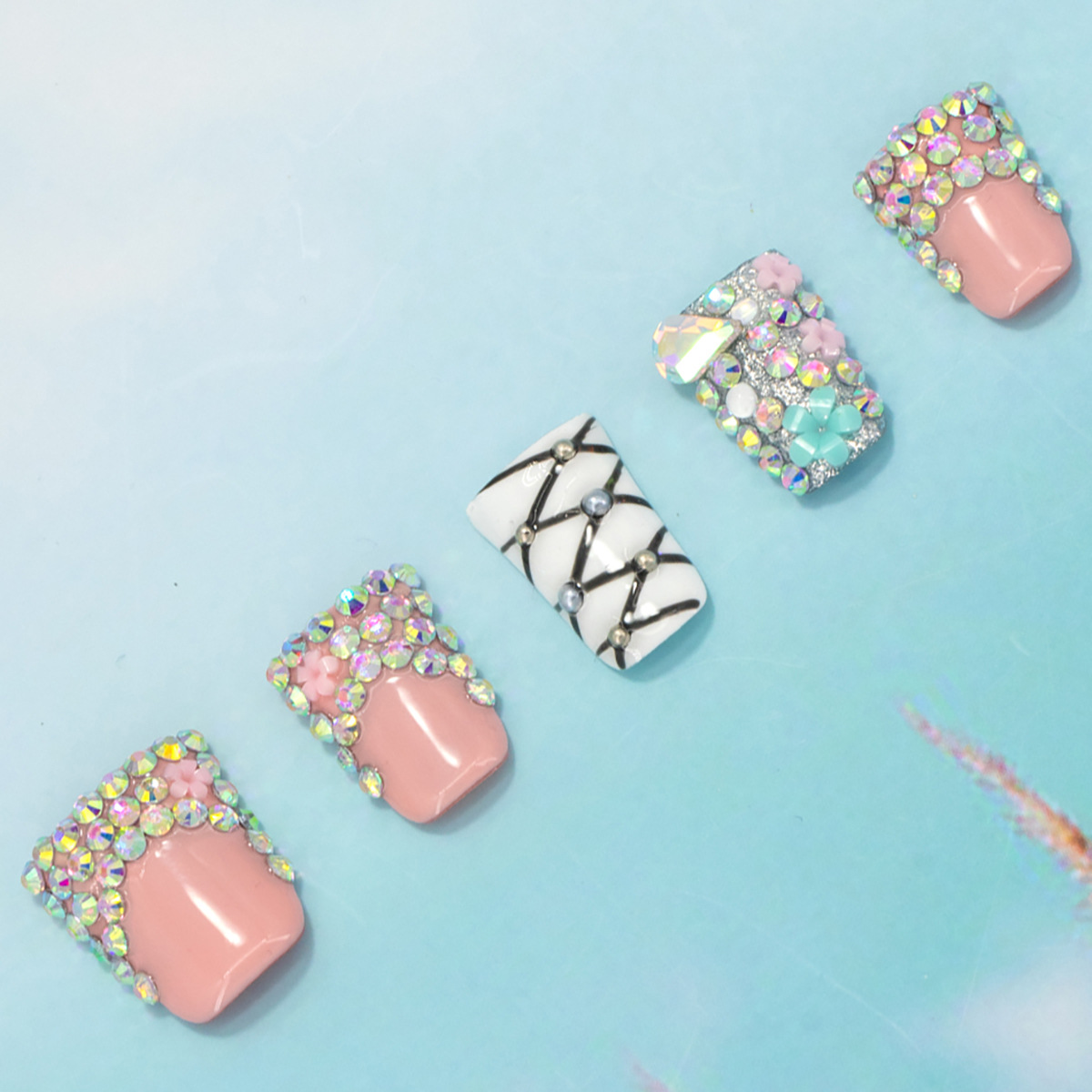 インスタイルウェアラブルネイル、純粋な手作りのハイエンド外国貿易モデル、ヨーロッパとアメリカの国境を越えた人気の手作りカモノハシ台形ネイル、ハイエンド