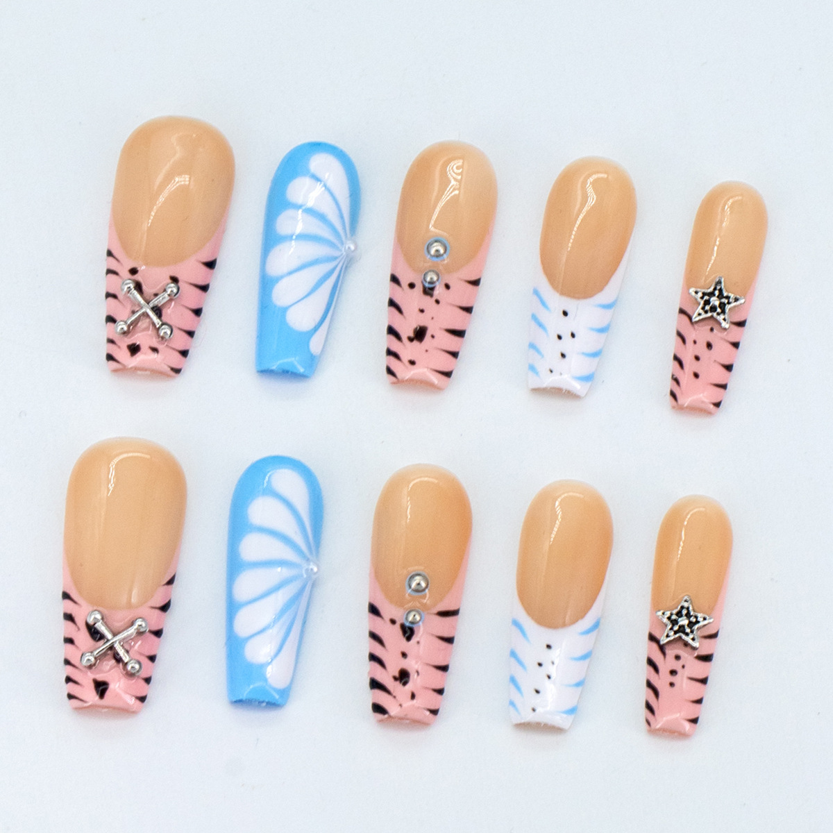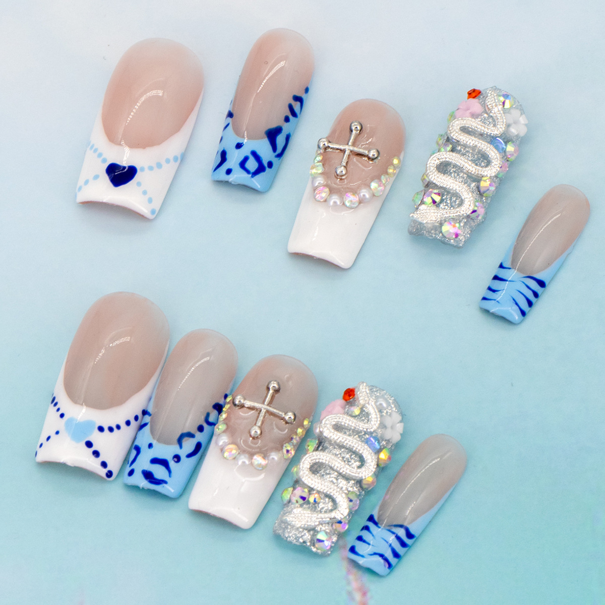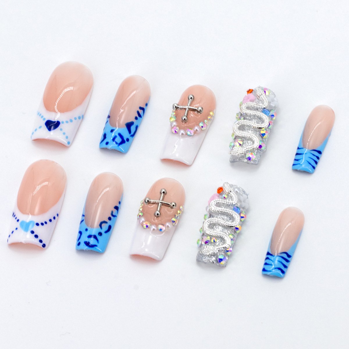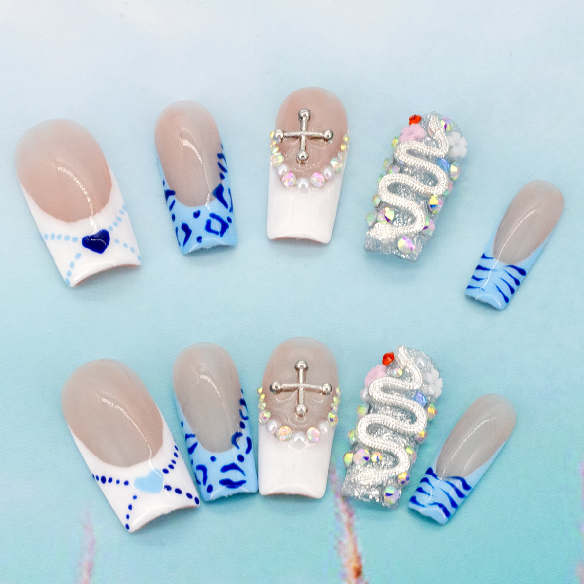 インスタイルウェアラブルネイル、純粋な手作りのハイエンド外国貿易モデル、ヨーロッパとアメリカの国境を越えた人気の手作りカモノハシ台形ネイル、ハイエンド