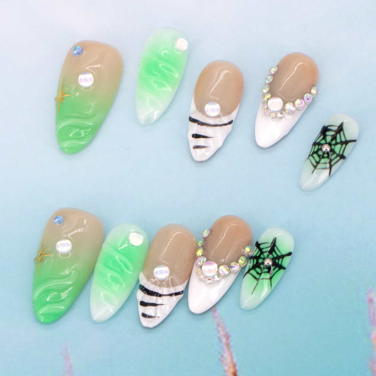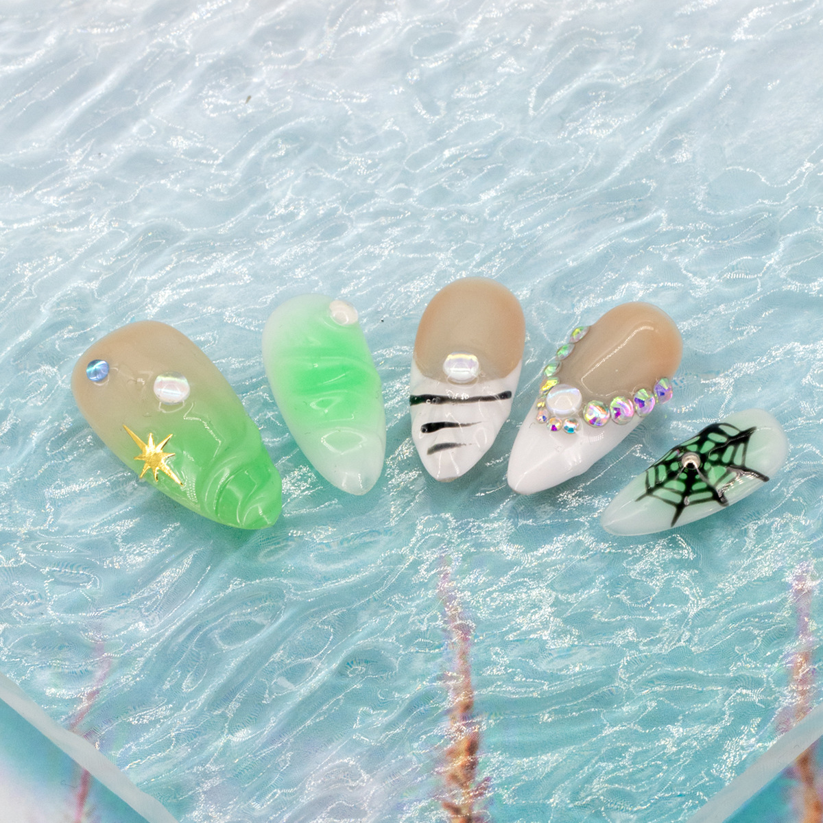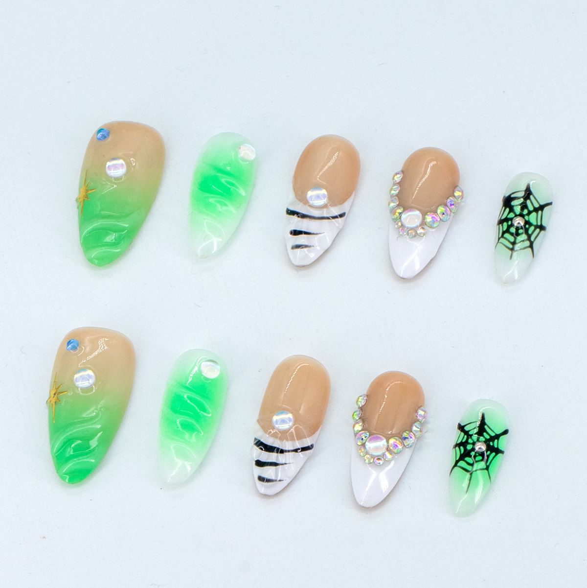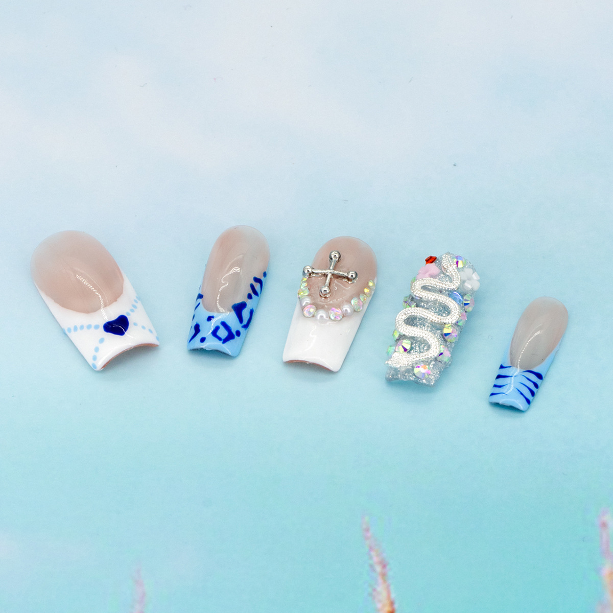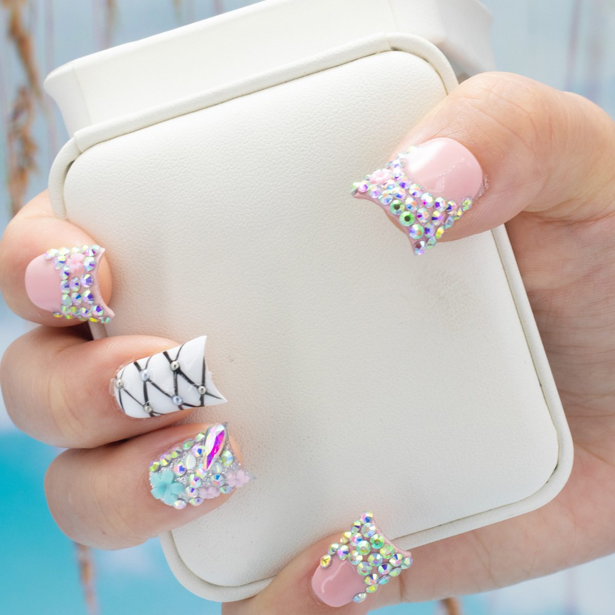 インスタイルウェアラブルネイル、純粋な手作りのハイエンド外国貿易モデル、ヨーロッパとアメリカの国境を越えた人気の手作りカモノハシ台形ネイル、ハイエンド