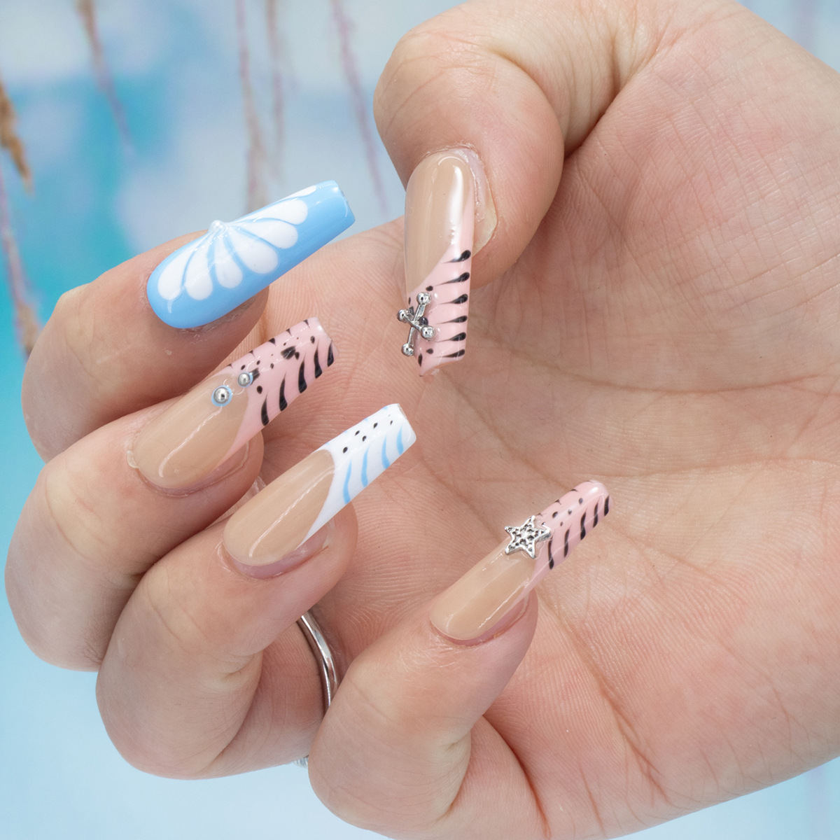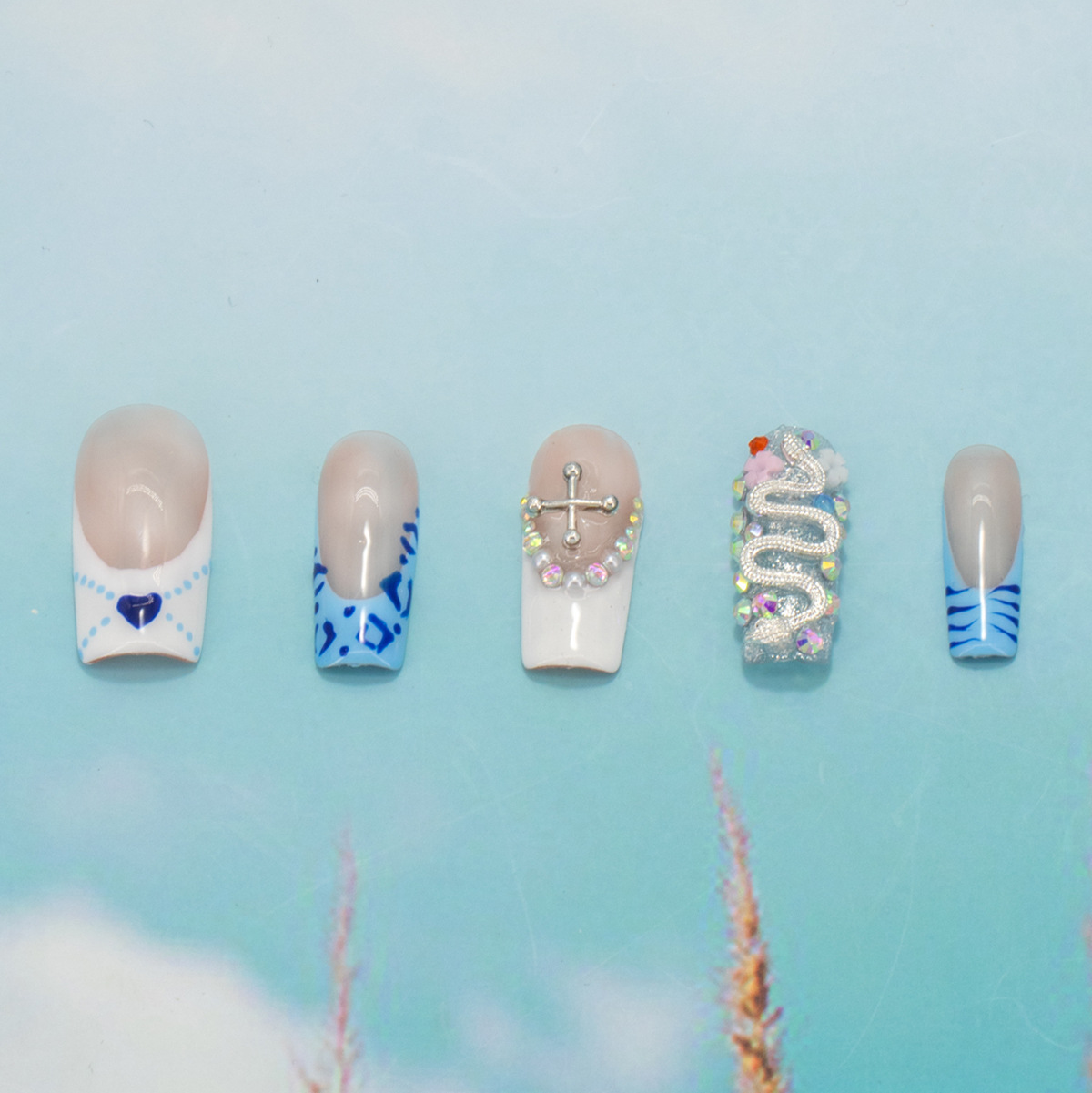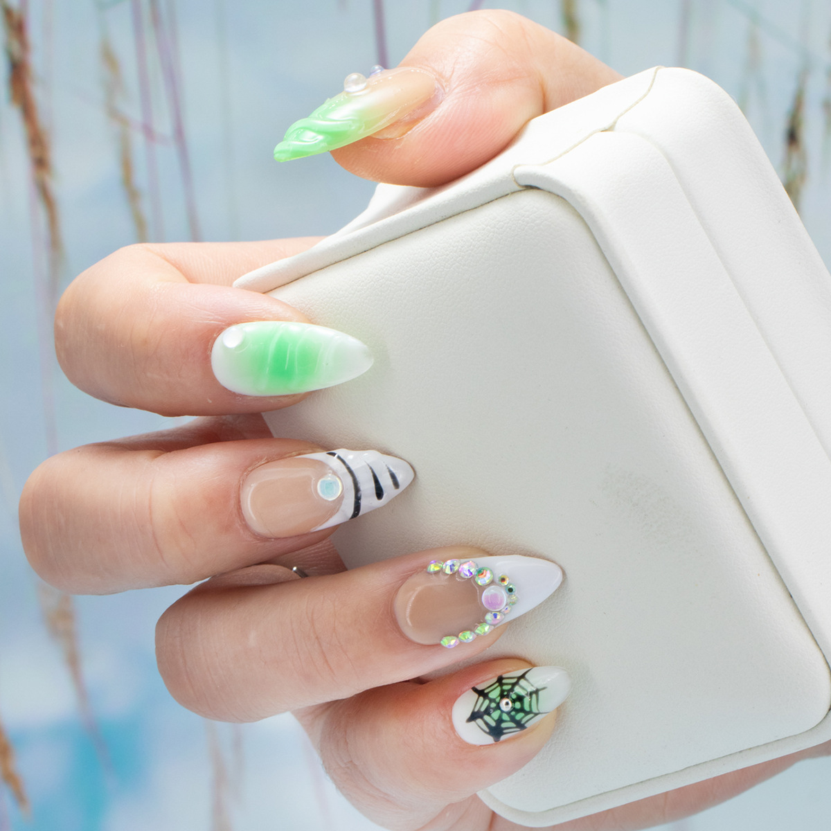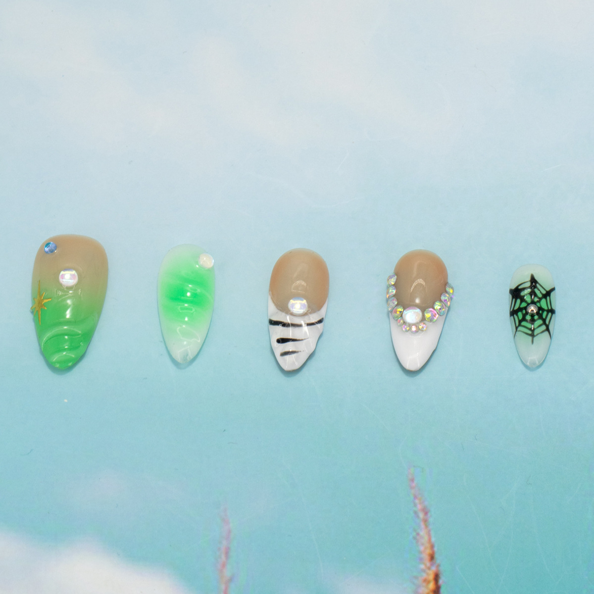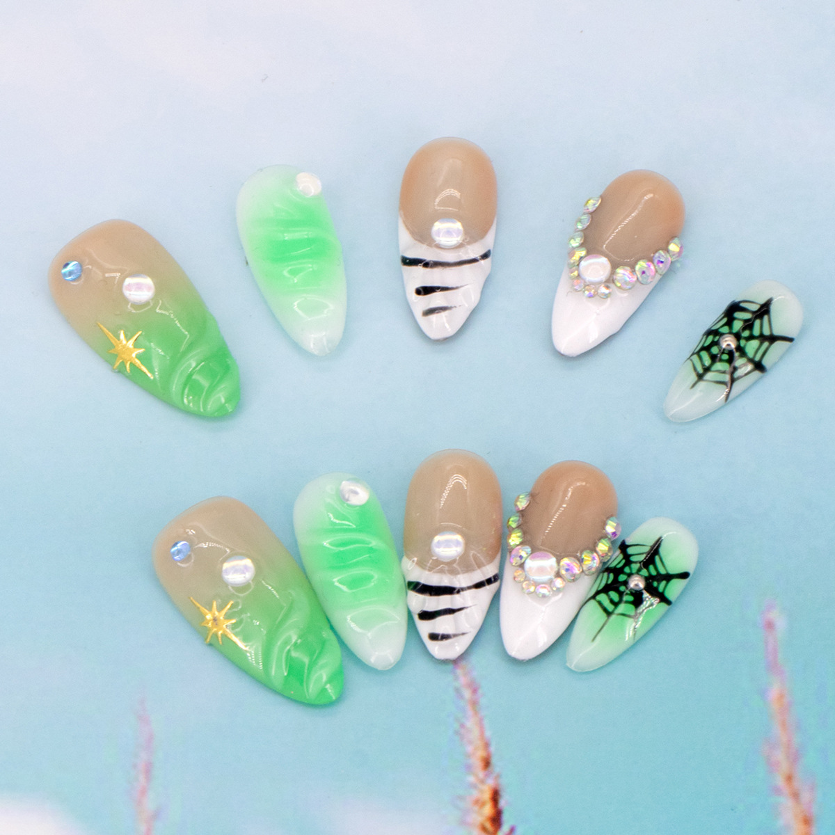 インスタイルウェアラブルネイル、純粋な手作りのハイエンド外国貿易モデル、ヨーロッパとアメリカの国境を越えた人気の手作りカモノハシ台形ネイル、ハイエンド