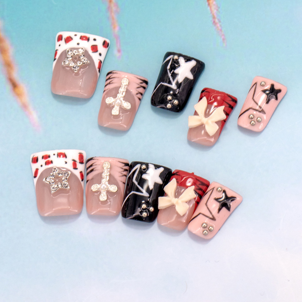 ディー・リアンファ-中楕円形,ディー・リアンファ-ショートラダー,ディエリアンファ・中梯子,悪魔の目,ランダムなスタイルの手作りネイル,ヒョウクロスショートT,HZ102510,HZ102517,HZ102518,HZ102516,青い魔女,フェイスブックの赤い花,五弁の花アーモンド,カラフル,蝶を誘う桃の花,ピンクバタフライダイヤモンド,カラフル,黒アプリコット白蝶