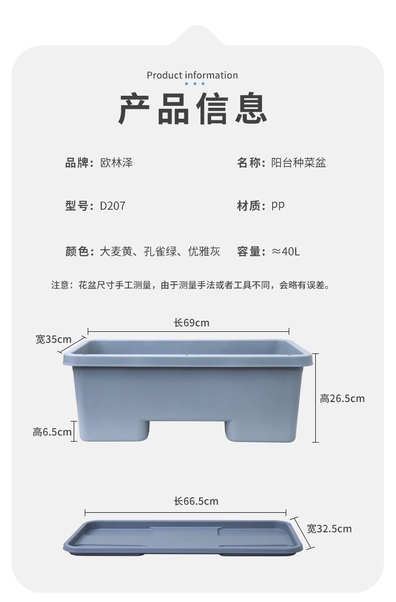 欧林澤陽台種菜鉢園芸プラスチック植木鉢卸売り大サイズ庭園長方形栽培花箱種菜鉢