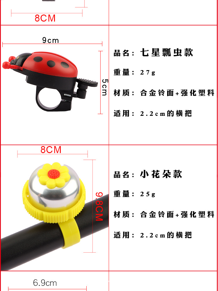 自行车铃铛 可爱甲壳虫车铃瓢虫卡通喇叭 响亮清脆 儿童铃铛