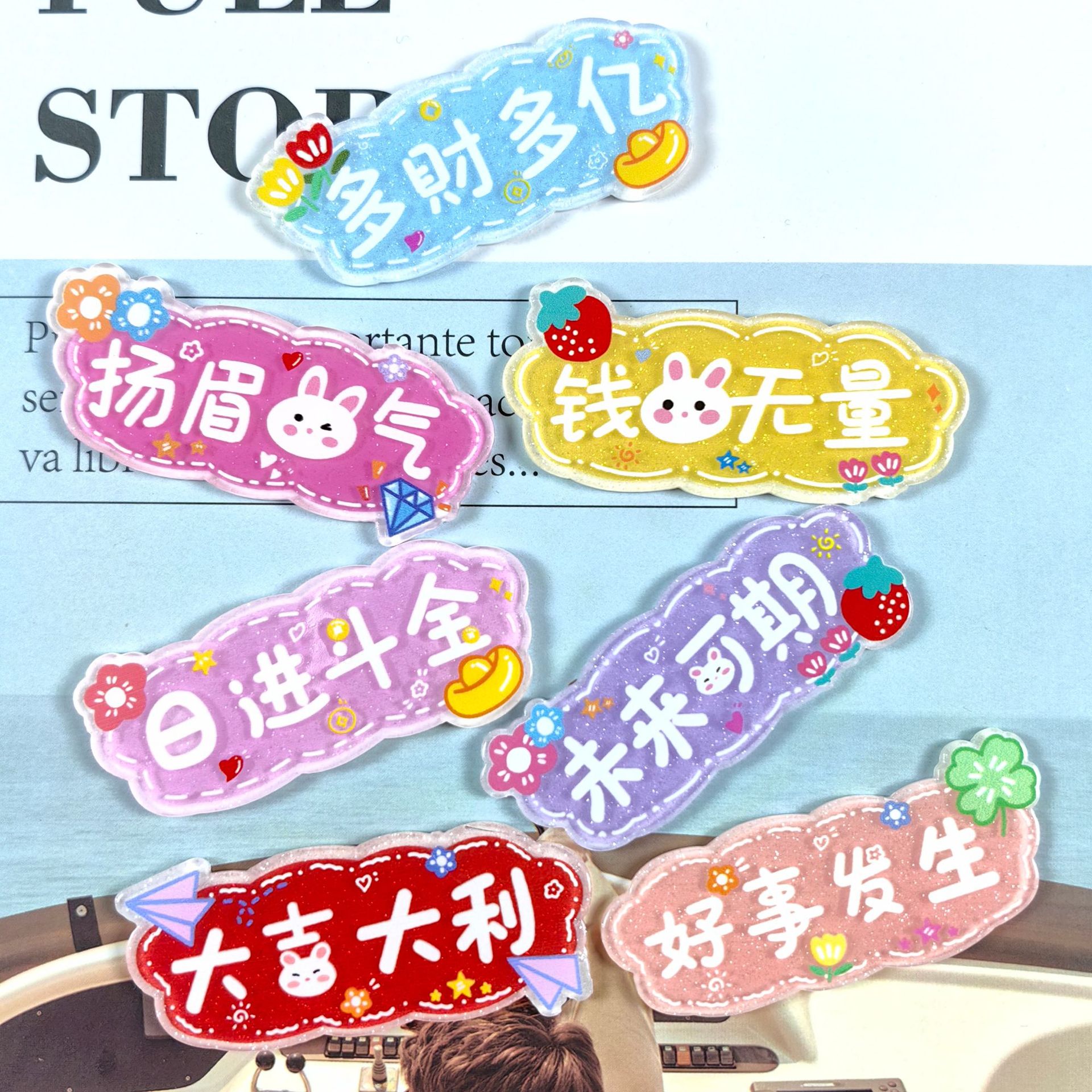 クリエイティブ漫画冷蔵庫貼りアクリルかわいい字札装飾マグネット個性髪飾りネット赤髪クリップアクリル