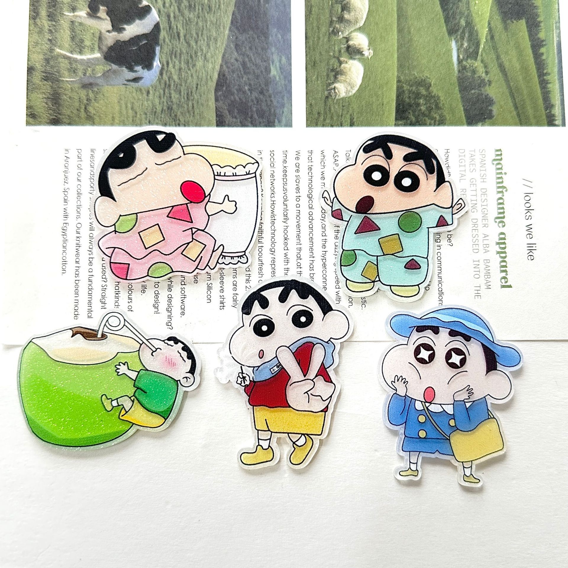 漫画趣味クレヨンしんちゃんアクリルdiyアクセサリーヘアピン携帯ケースパッチ冷蔵庫シール材料バッグ