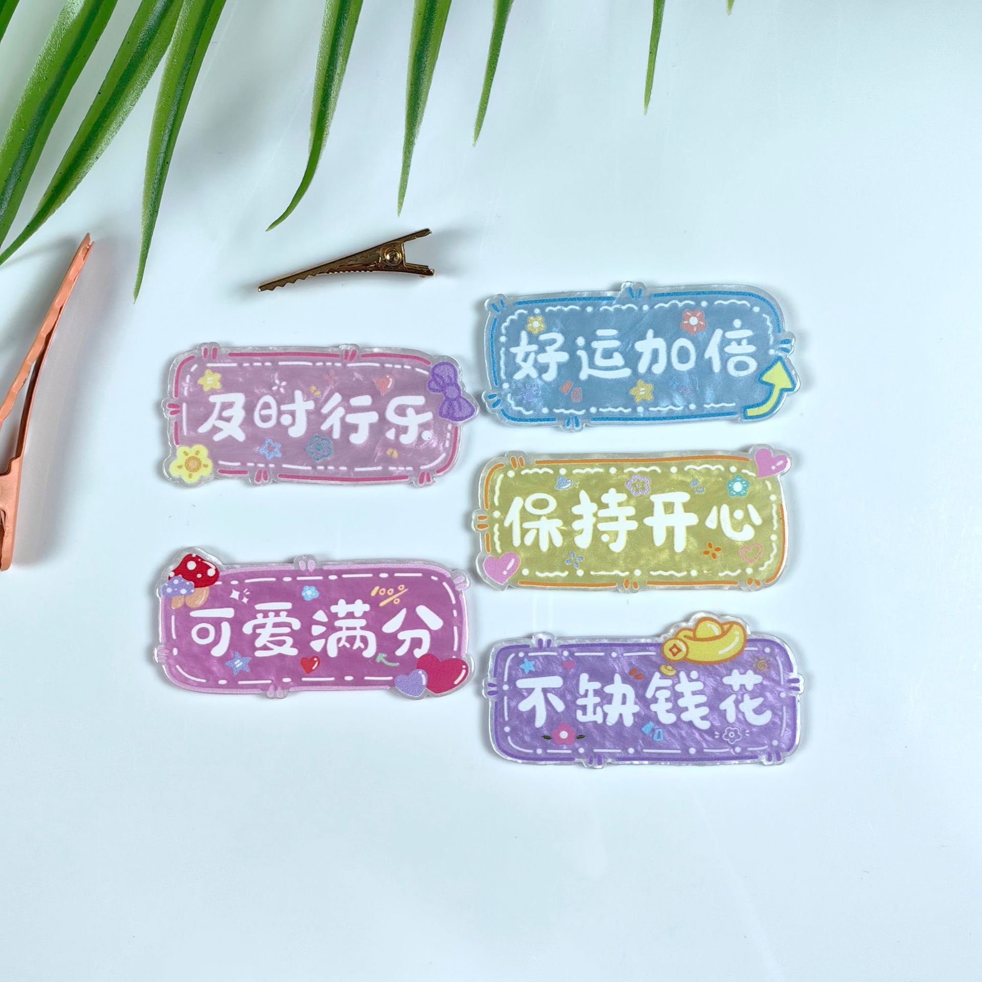 漫画風で面白い、中国風の文字が入ったブローチ、個性的で甘いネームバッジ、かわいい小さな胸飾り、DIYアクセサリー