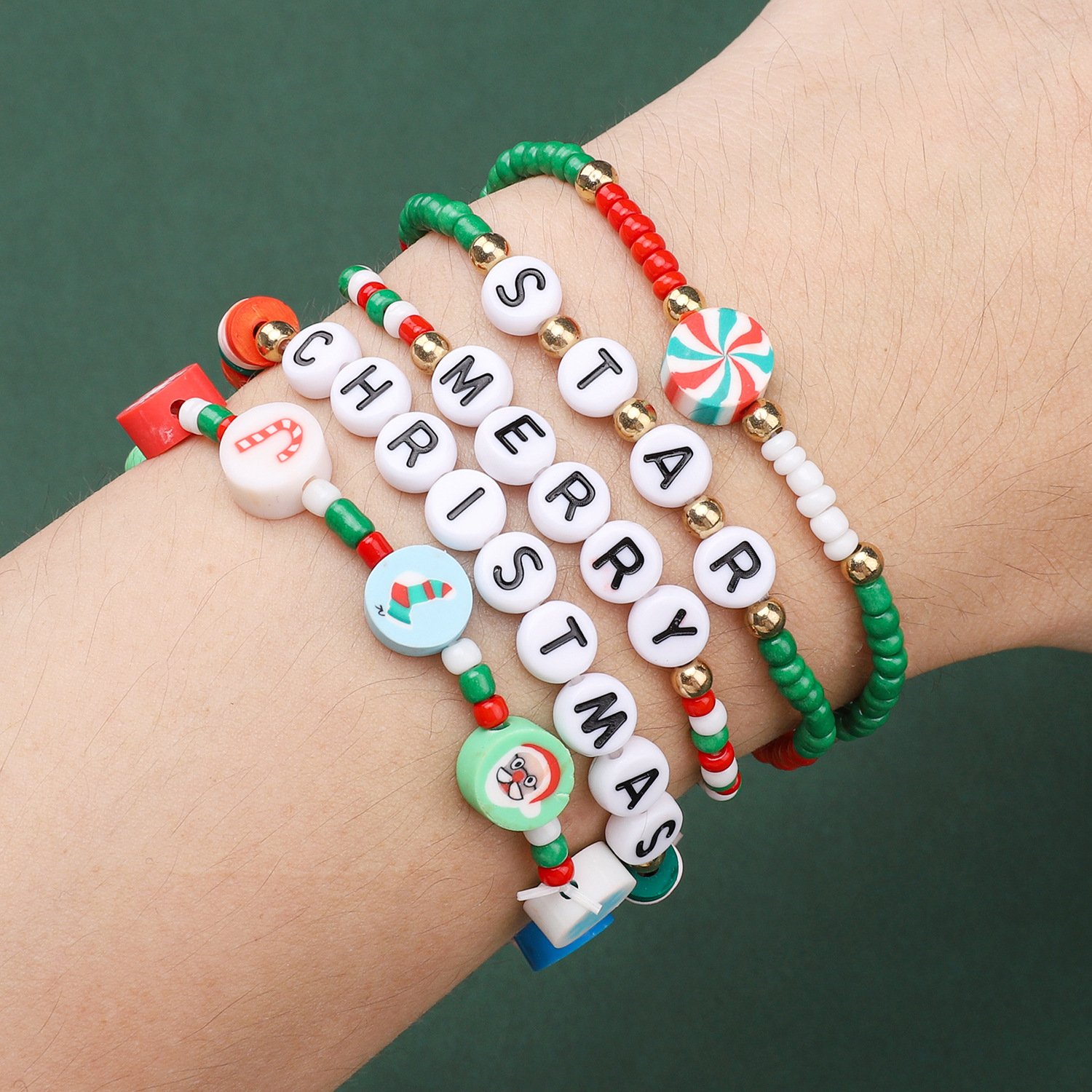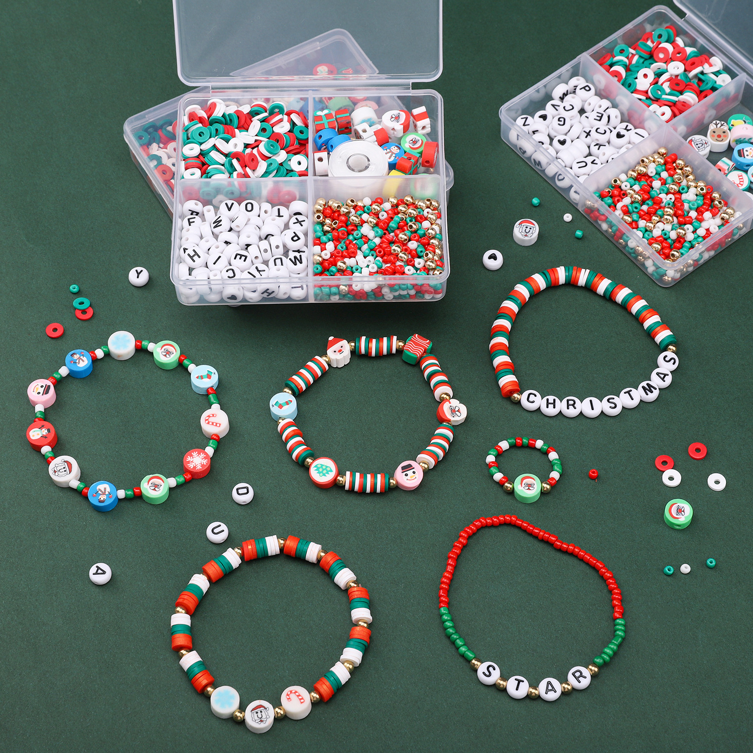 漫画かわいいソフト陶字母珠クリスマスセットDIYアクセサリー手作りビーズブレスレット材料バッグ