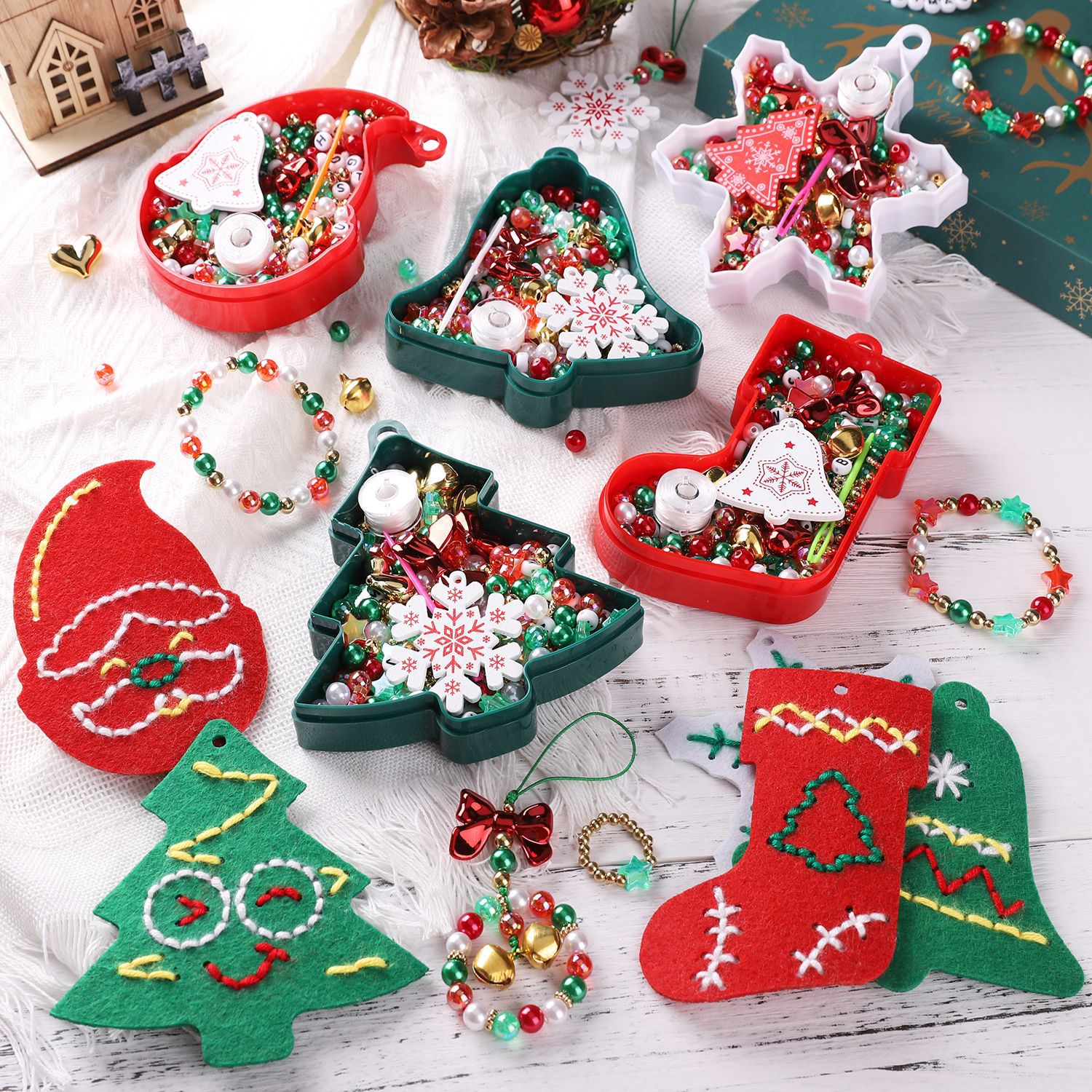 漫画クリスマスシリーズビーズ箱DIYアクセサリーアクセサリー手作りクリスマスストラップ携帯ストラップ材料