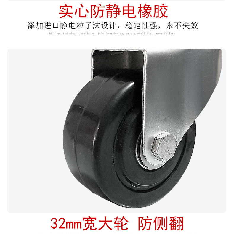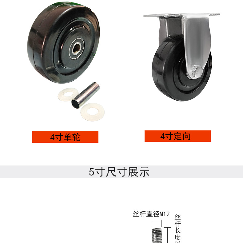 4インチユニバーサルホイール黒色ソリッドゴムホイール帯電防止キャスター3/5インチスクリュー静音ホイール押し車輪ホイール