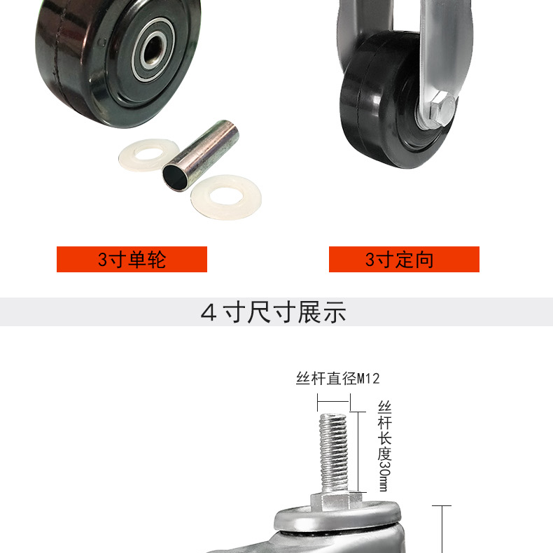 静音食車輪3インチ4インチ5インチ単輪巻き止め白蓋単輪防水手押しトレーラー車輪車輪