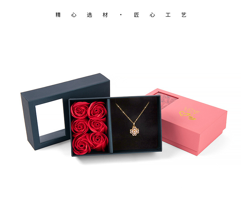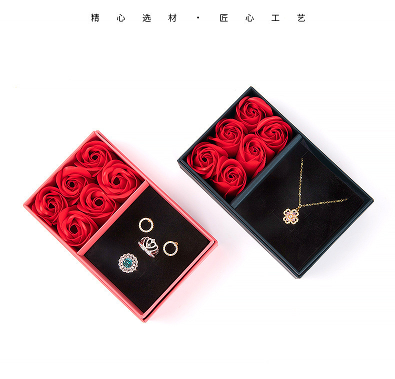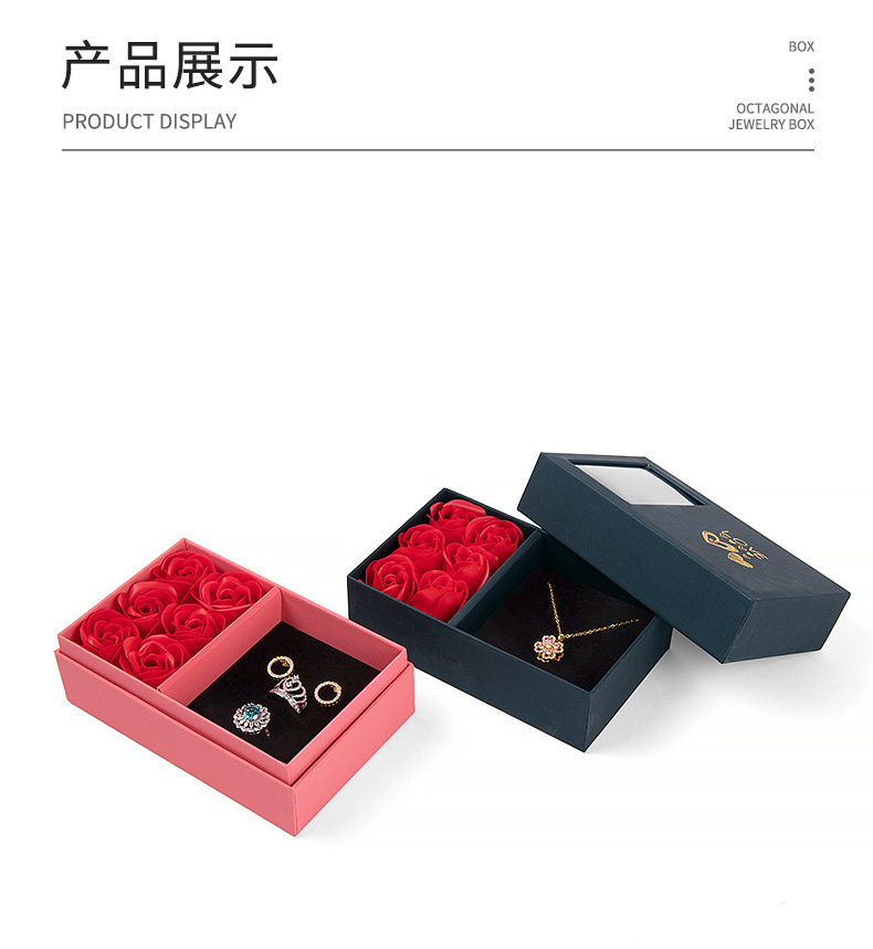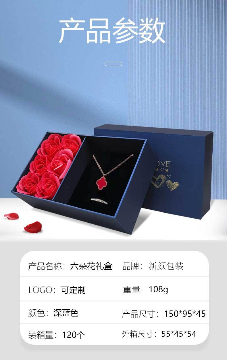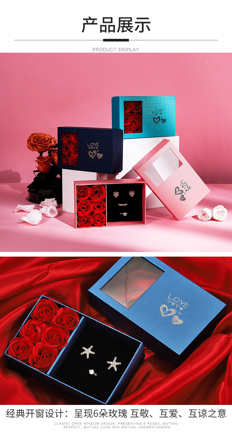メーカー販促天地蓋六輪バラリングジュエリー包装箱ロマンチックな祝日イヤリングネックレス包装箱