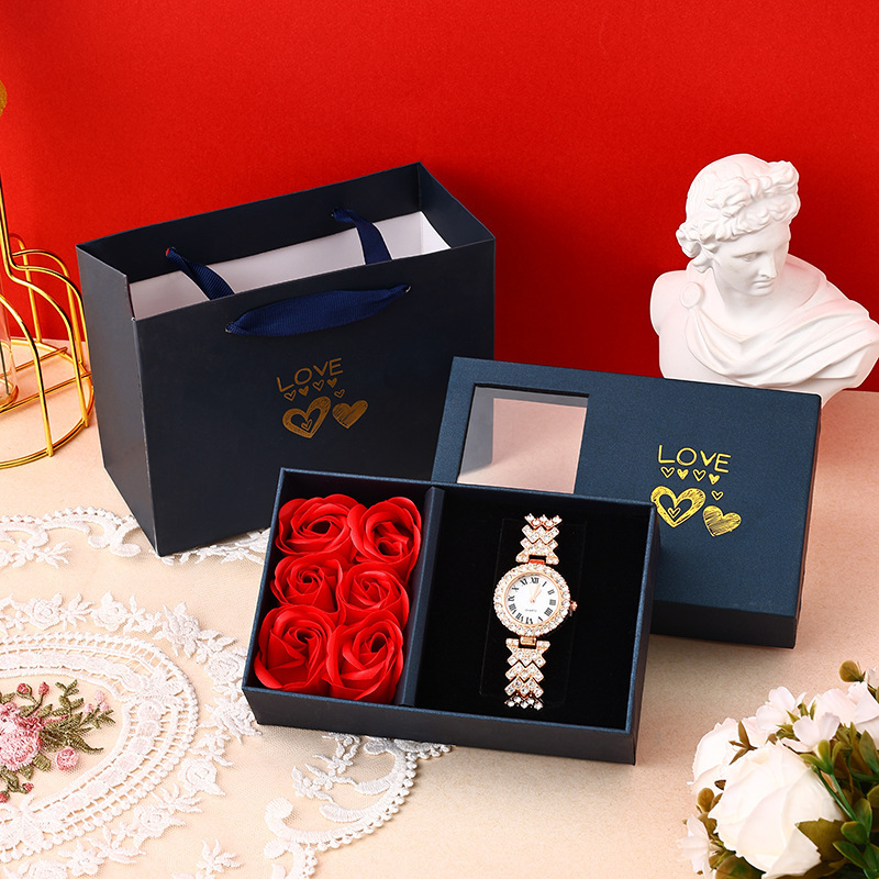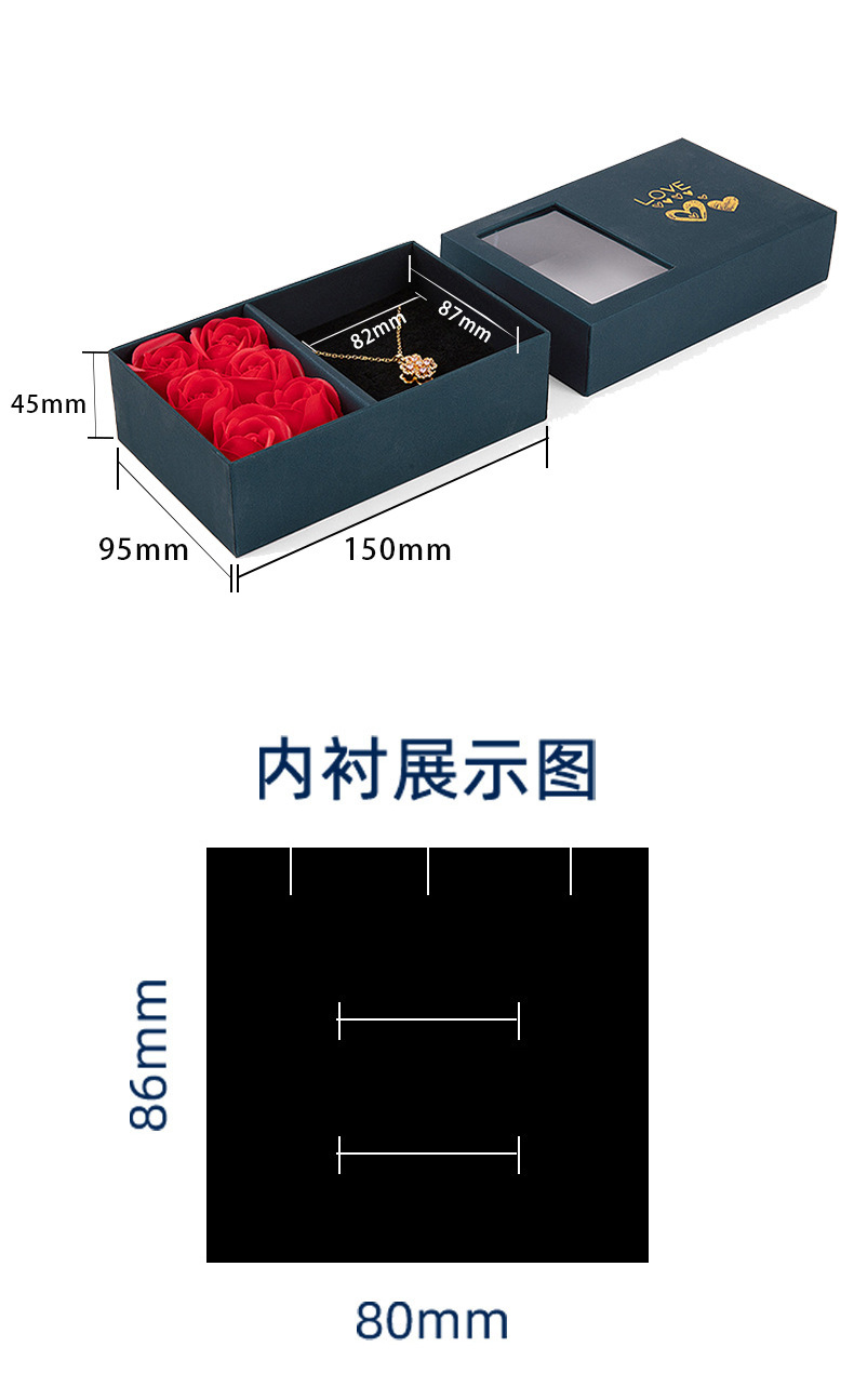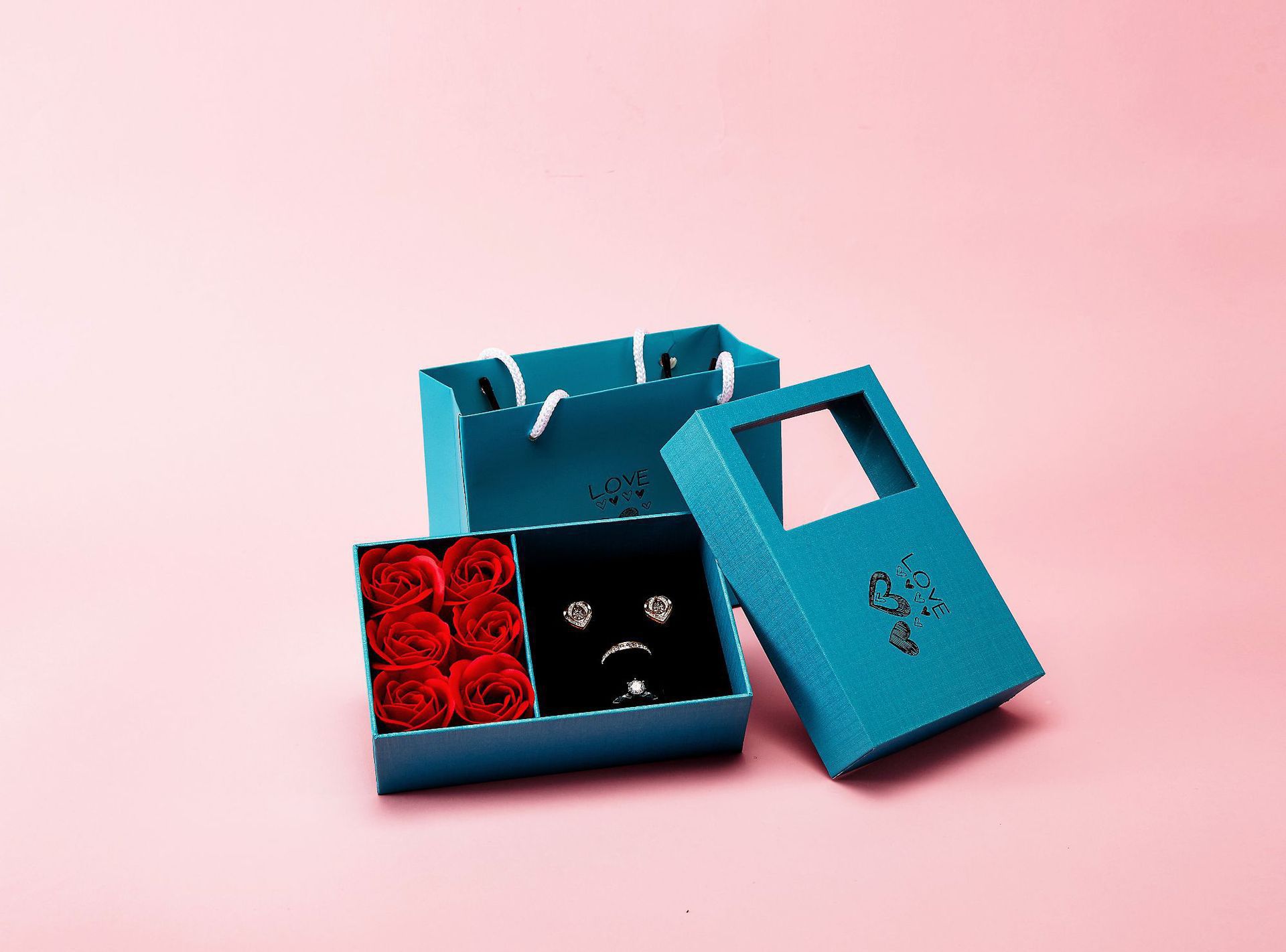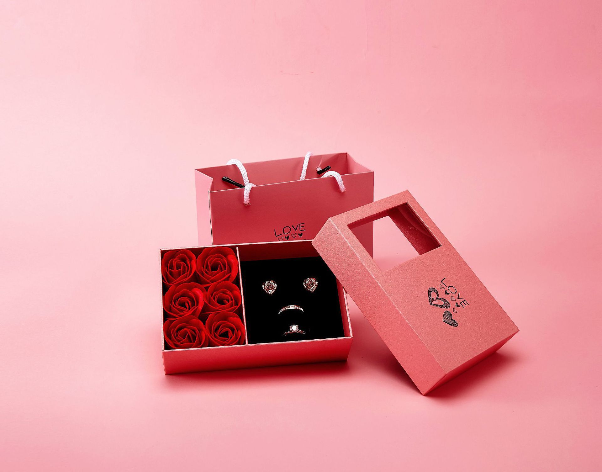 メーカー販促天地蓋六輪バラリングジュエリー包装箱ロマンチックな祝日イヤリングネックレス包装箱