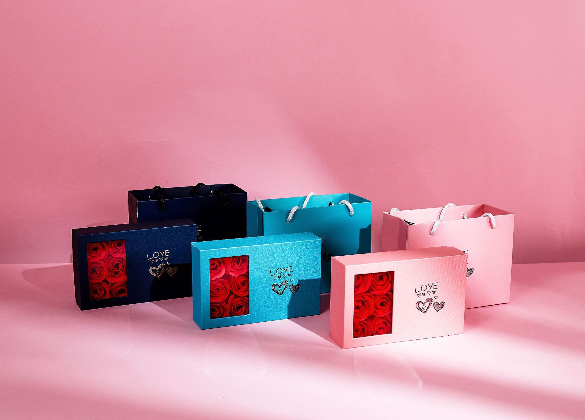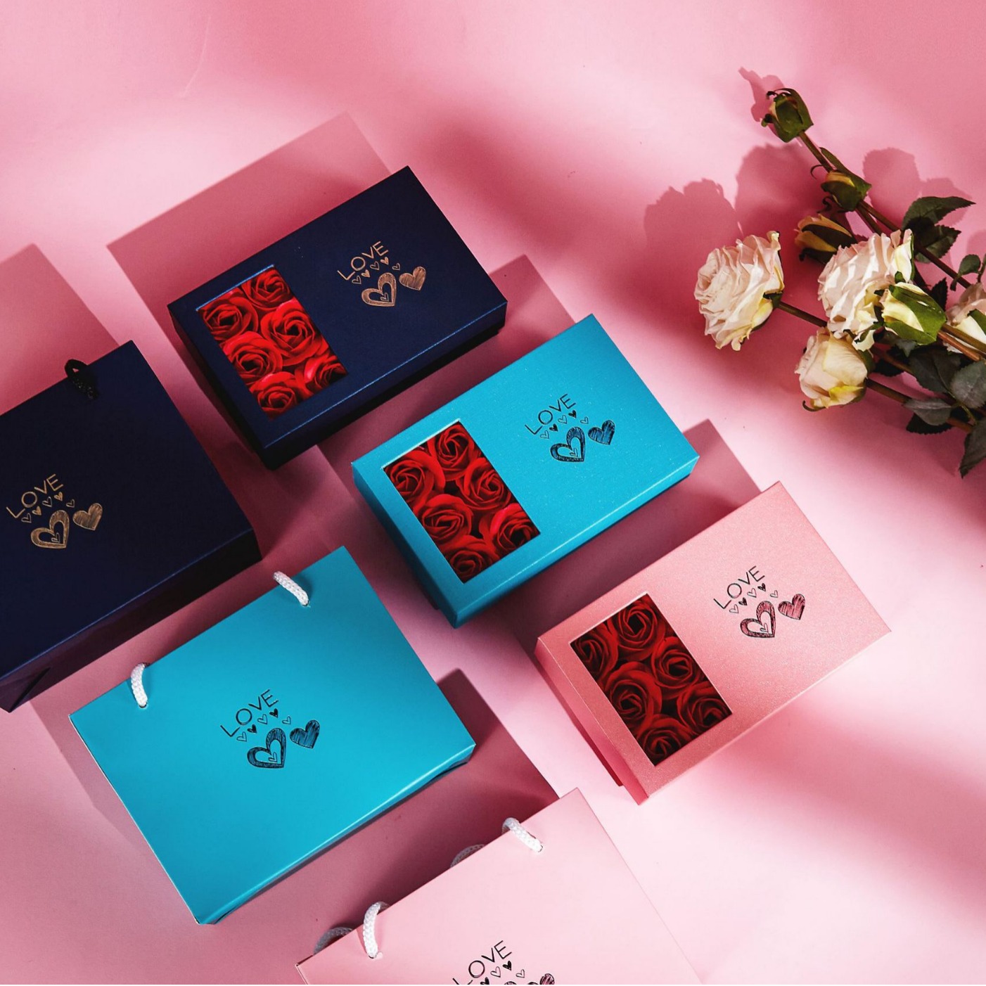 韓風520礼箱バラの花箱開窓天地蓋6輪薔薇吊り下げ箱指輪箱七夕永生花首