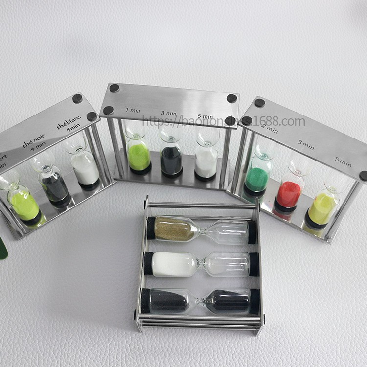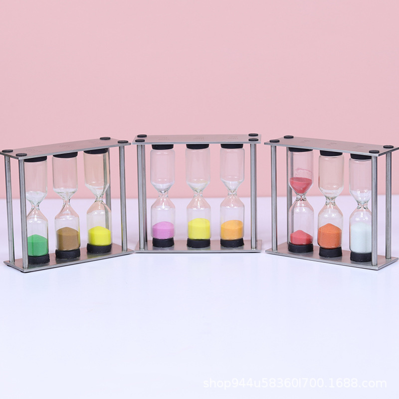 創意的な家庭装飾置物金属三合一砂時計ガラスセット祝日プレゼントお茶砂時計