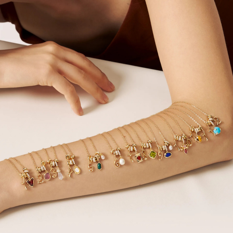 欧米カラー12生辰石ペンダントdiyアクセサリーネックレス女性十二生辰石ブロックカラージルコンペンダント