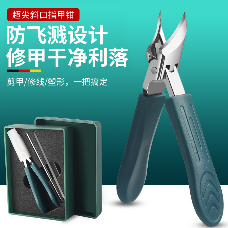 跨境加长斜口大开口指甲刀多功能尖细指甲剪精密盒装美甲工具套装