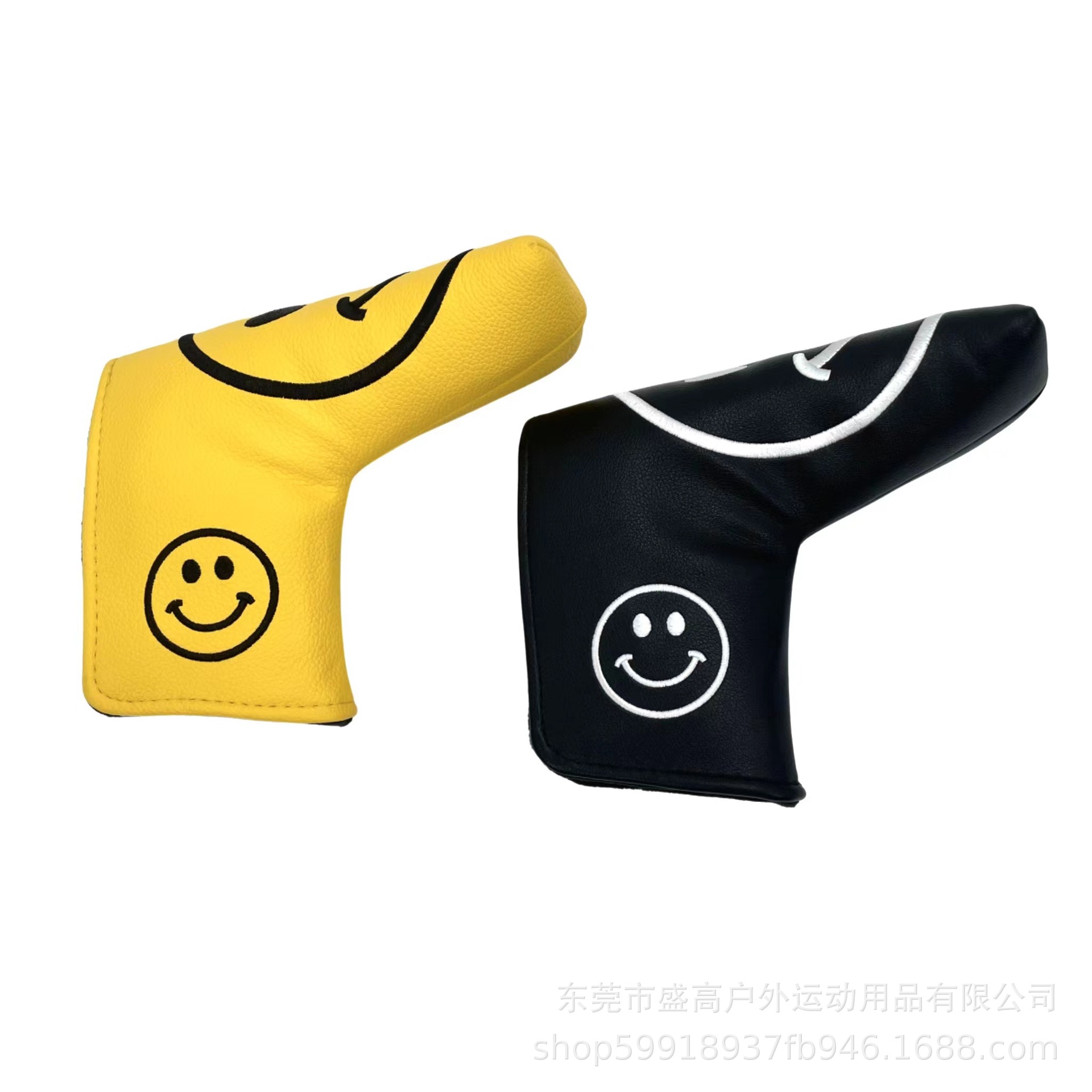 ゴルフ笑顔表情一字パター帽子カバーPU革防水生地パイルパター保護カバーマグネット吸引