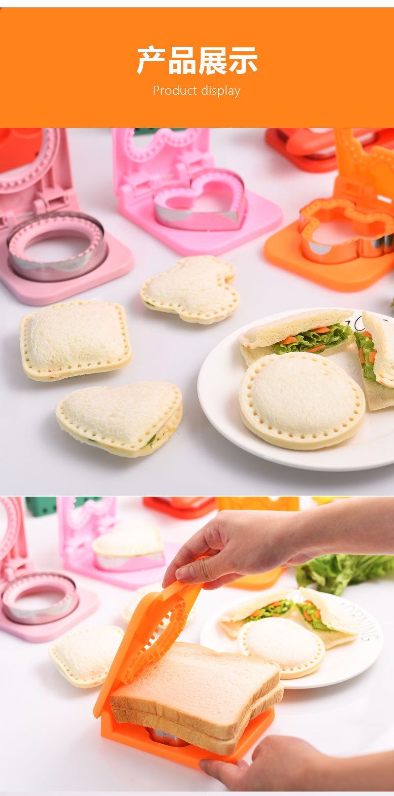 新型サンドイッチパン製造金型クリップ心包封辺切断一体工円方形ハート型恐竜自動車