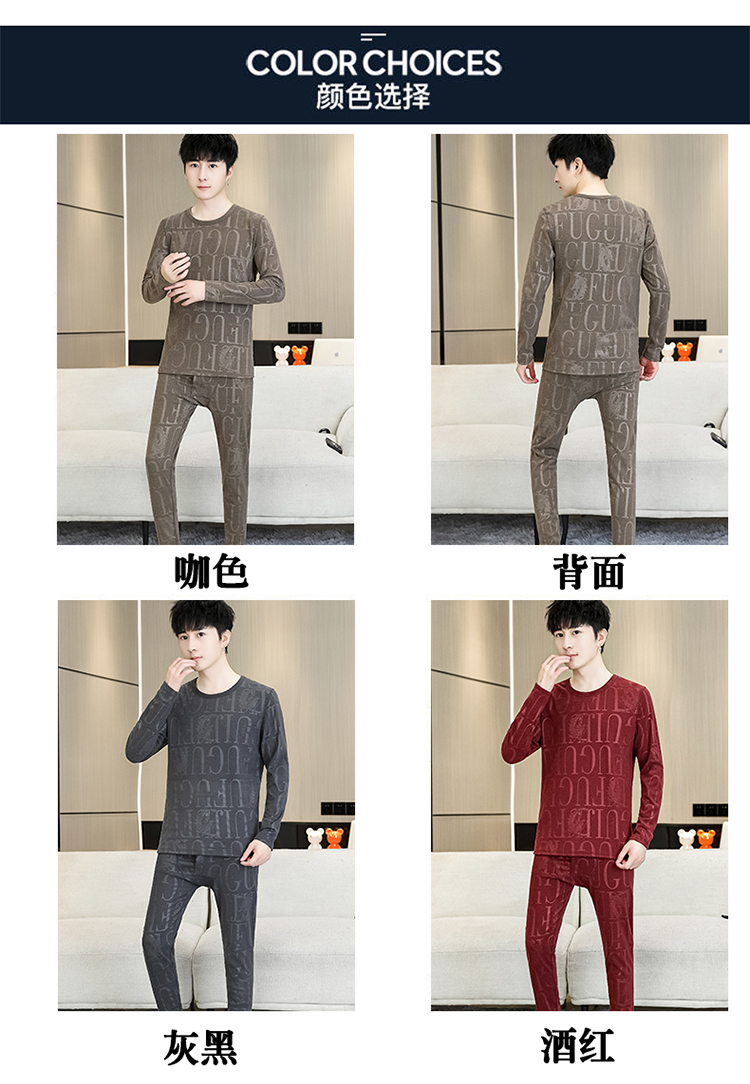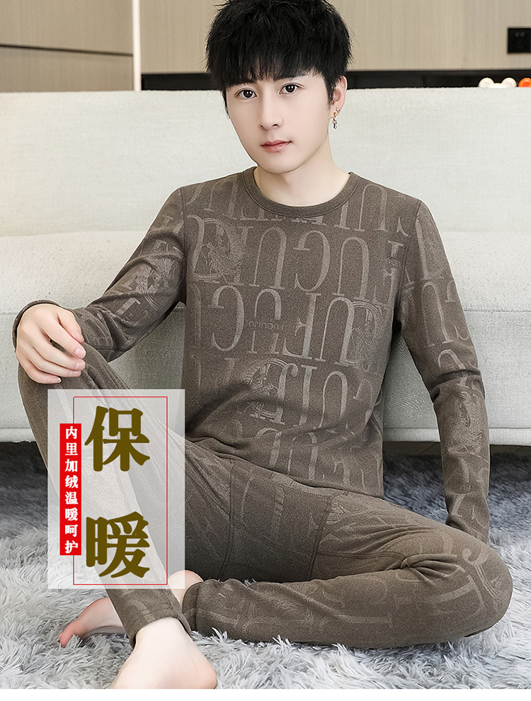 徳絨毛保温下着男性セット2024新型青少年高校大学生ベルベットダウン秋衣秋ズボン
