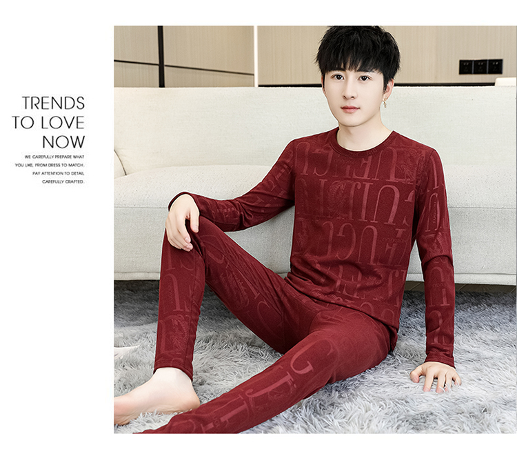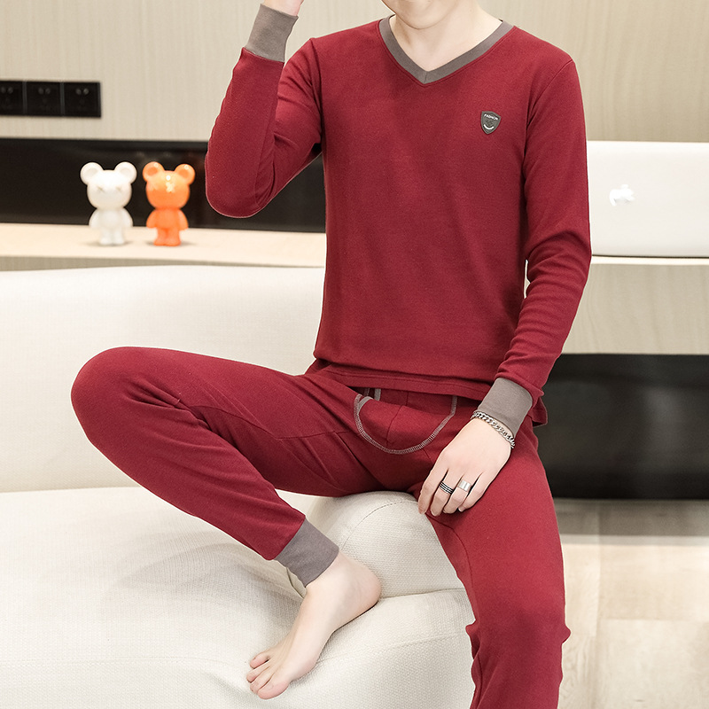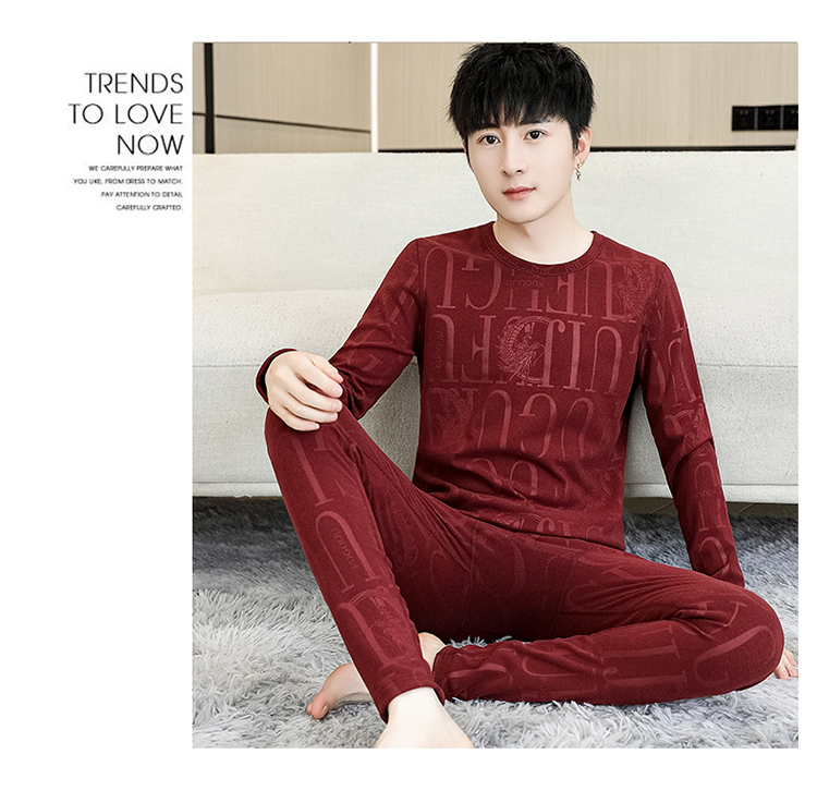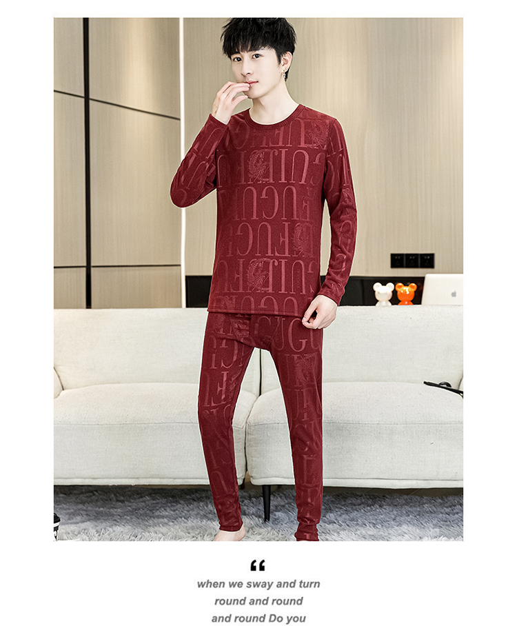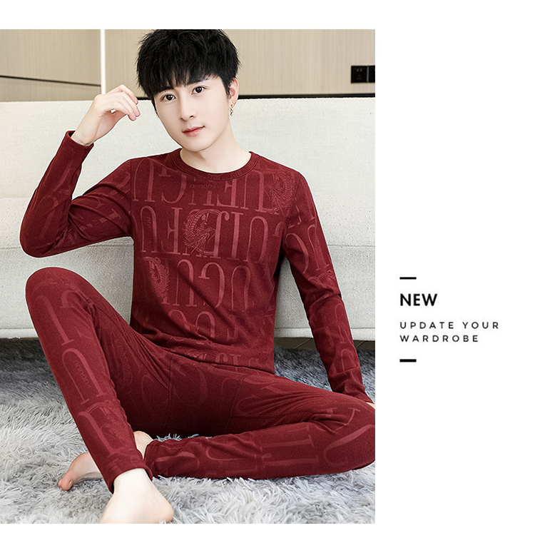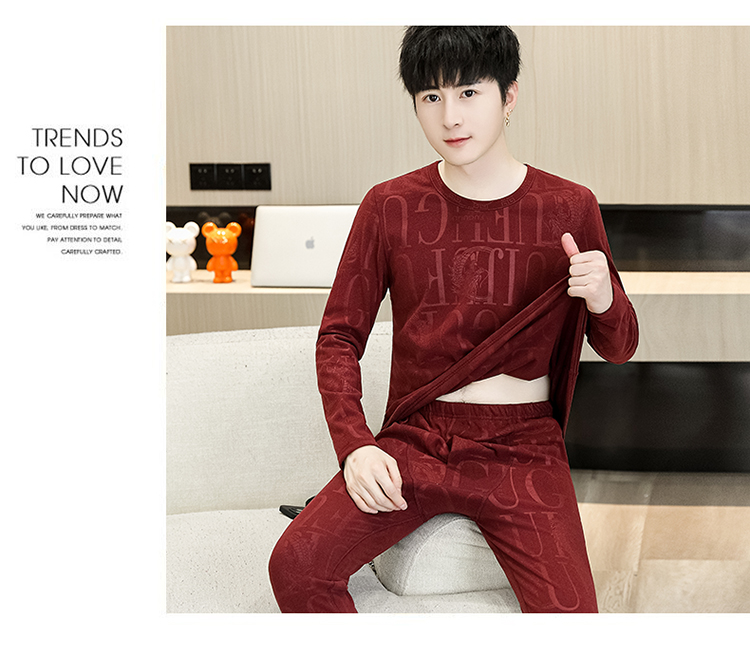 保温下着男秋冬の徳絨毛の底のシャツの本命年の赤い男性の丸首の秋の服の秋のズボンのスーツ