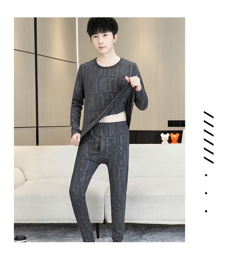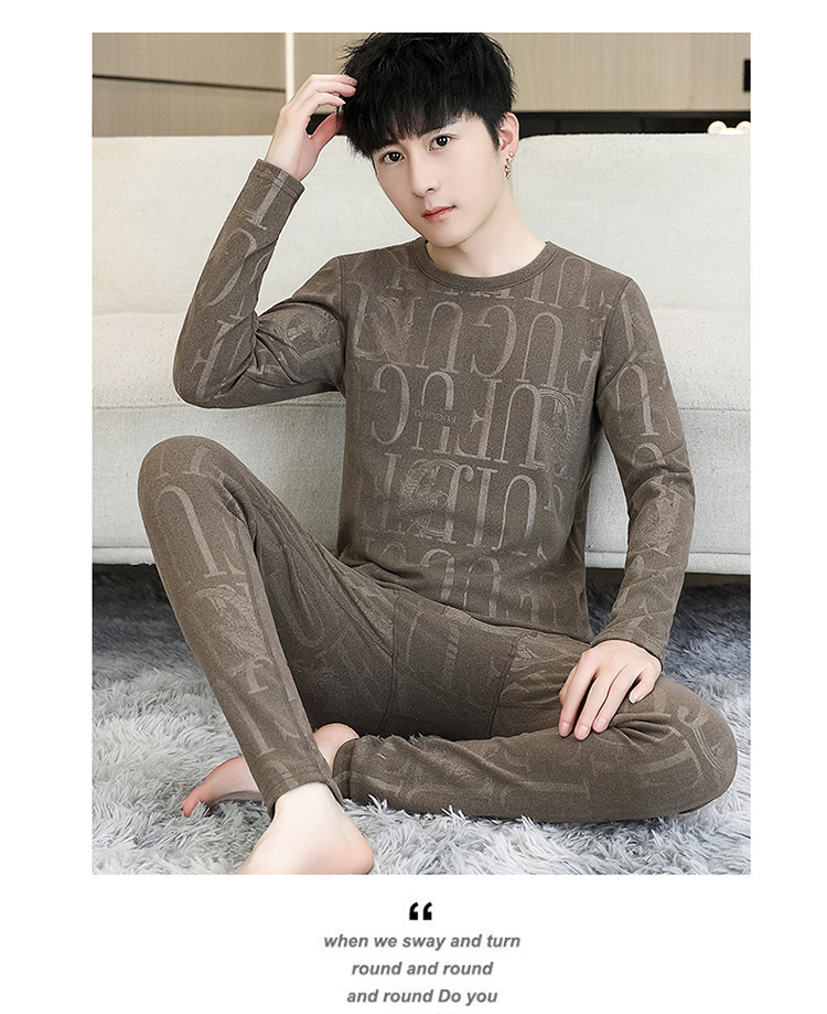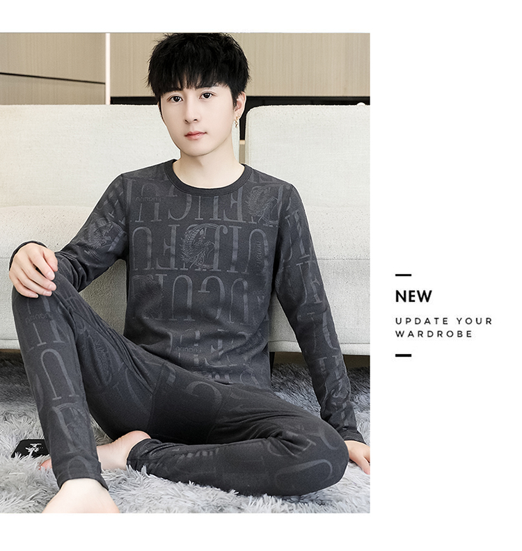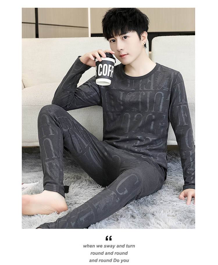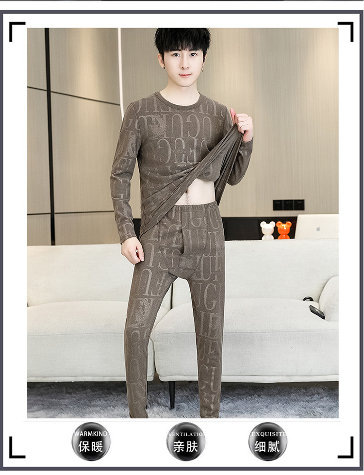 徳絨毛保温下着セット男性用恒温発熱絨毛面青年学生修身プリント絨毛秋衣秋ズボン