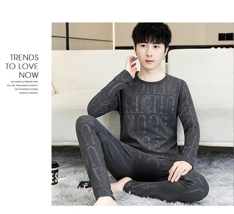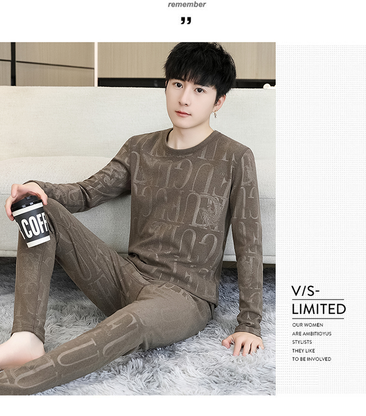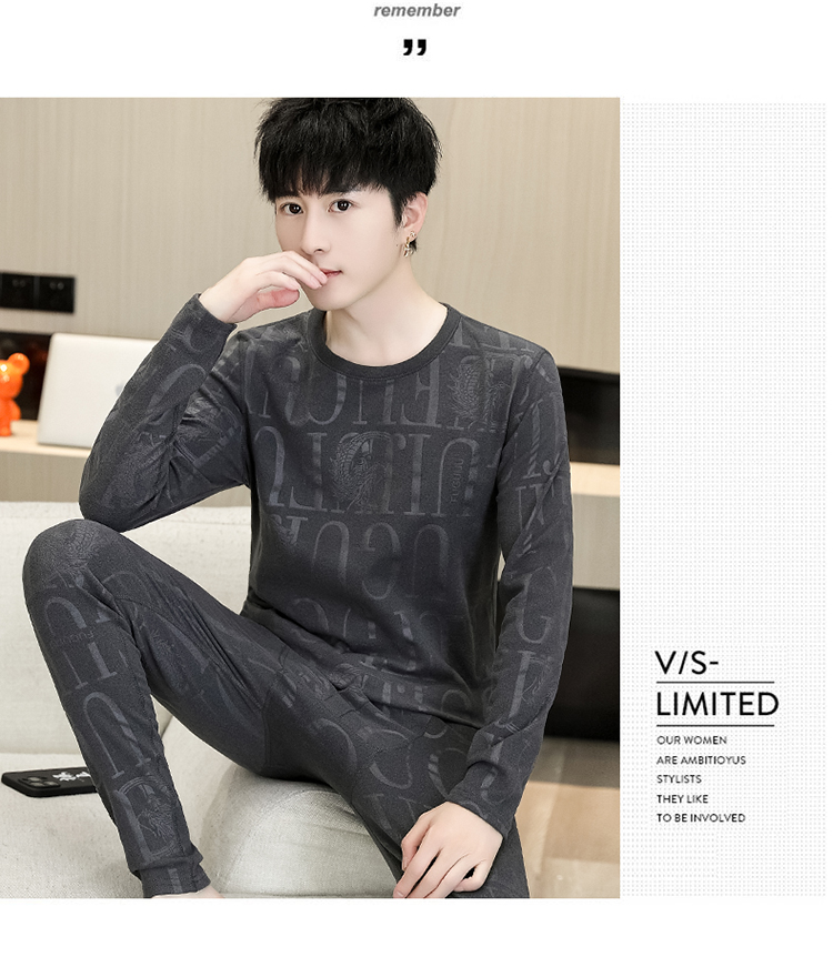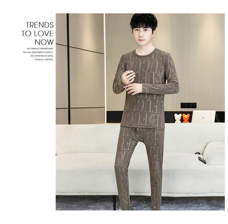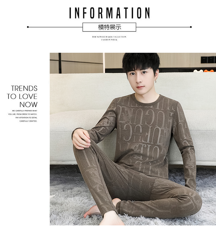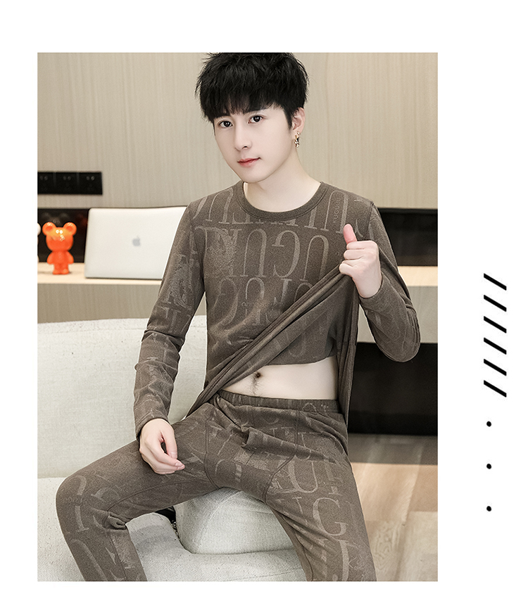 徳絨毛保温下着セット男性用恒温発熱絨毛面青年学生修身プリント絨毛秋衣秋ズボン