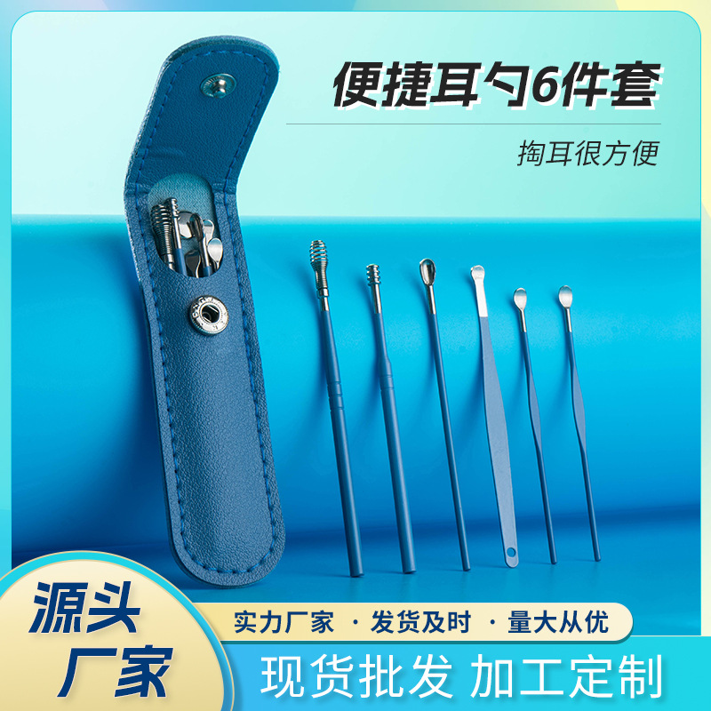 在庫あり 耳かきツール ポータブル キーホルダー付き 耳かきセット ステンレス製耳かきスプーン レザーケース 6点セット
