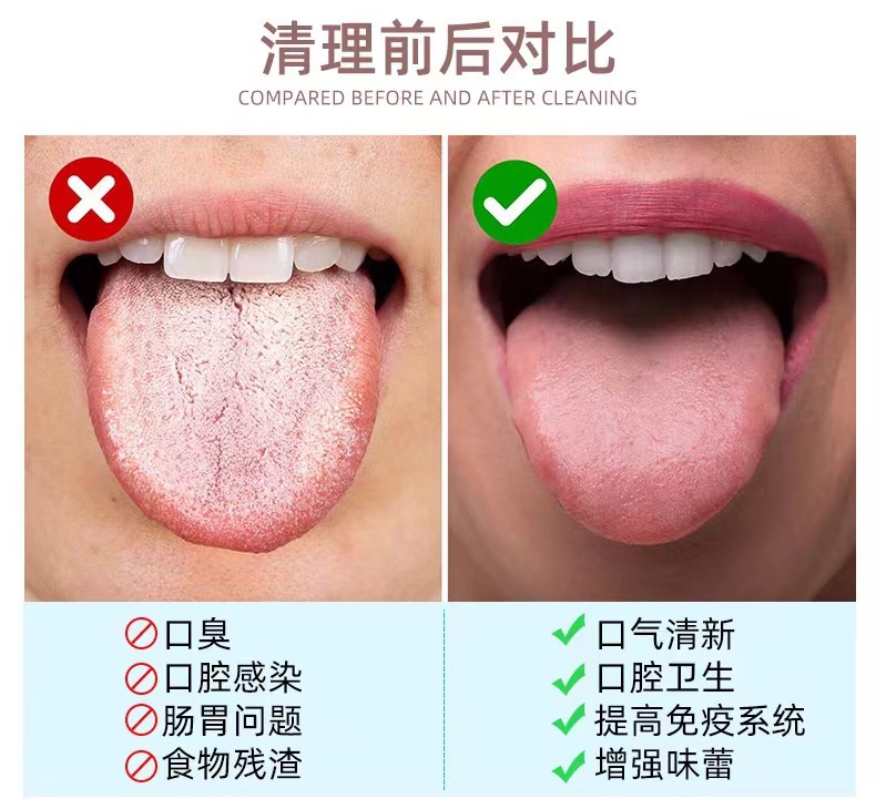 現物の舌の苔のクリーナーは舌の板をかすめて口臭の舌の苔を取り除きます。
