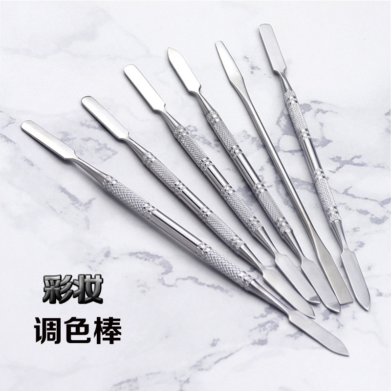 メイクアップツールステンレス化粧撹拌棒ダブルネイルスティック調色スクレーパーファンデーションアイシャドー美化粧パレット