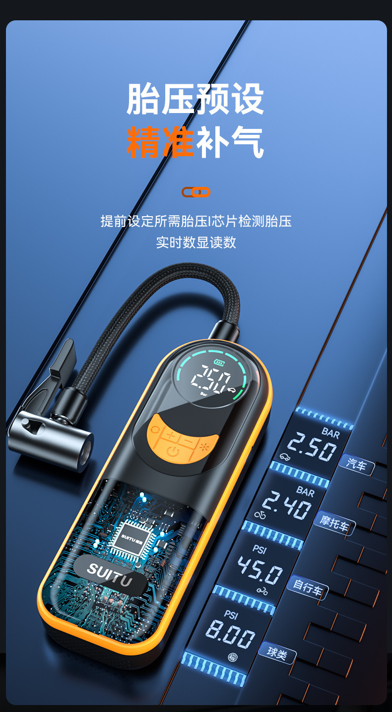 無線デジタル表示充電宝エアポンプバスケットボールバッテリーバイク自転車ミニ携帯車エアポンプクロスボーダー