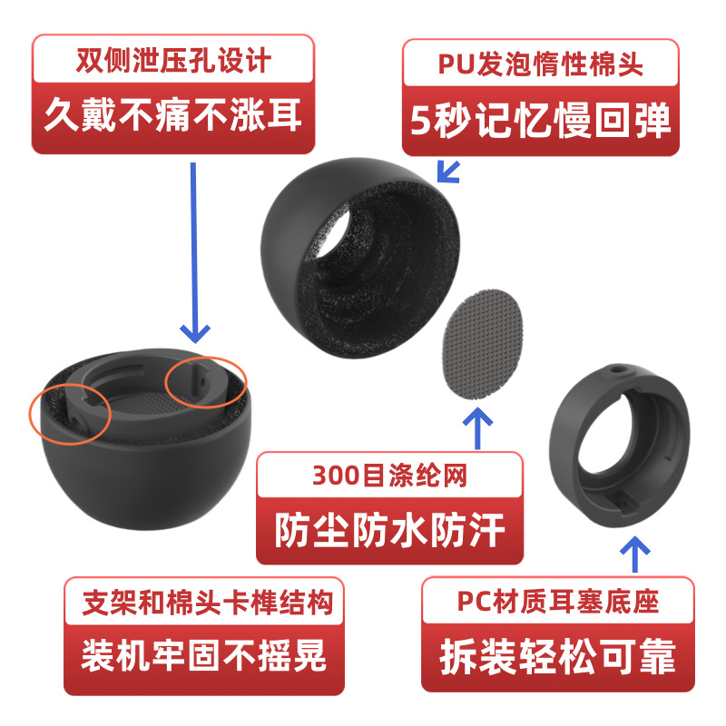 2:耳塞支架默认为和海绵头同色