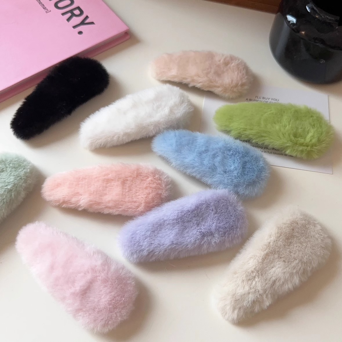 甜美毛绒彩色羊羔毛BB夹侧边发夹少女可爱秋冬刘海夹掰掰夹发饰