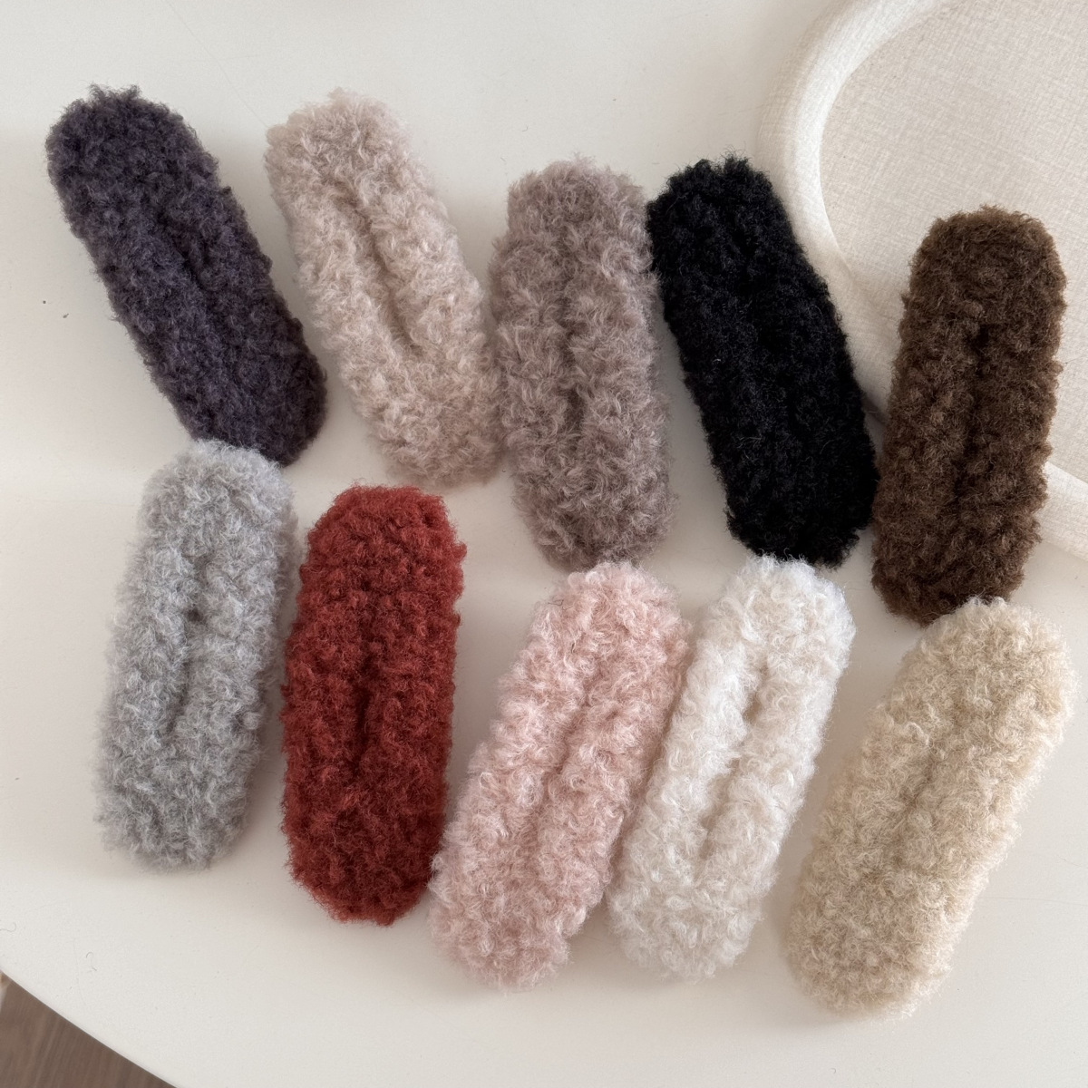 韩版毛绒彩色羊羔毛BB夹侧边发夹少女可爱秋冬刘海夹掰掰夹发饰