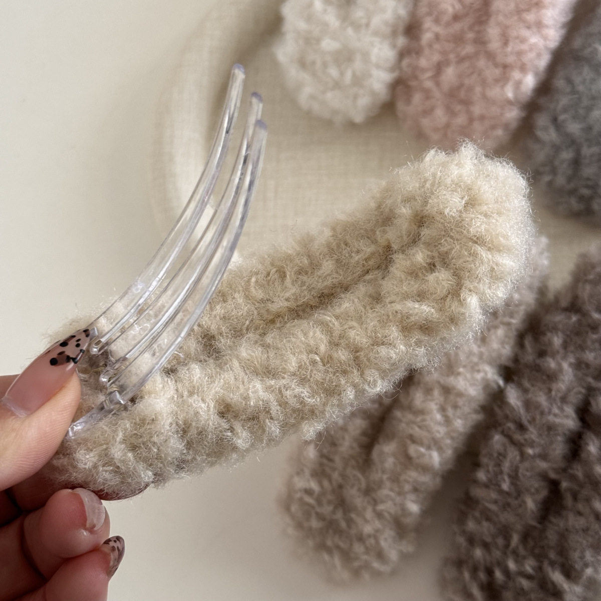 秋冬用のふわふわ大きめダックビルヘアクリップ、甘くて可愛い女の子向け、後頭部用ワンワードクリップ、ヘアアクセサリー
